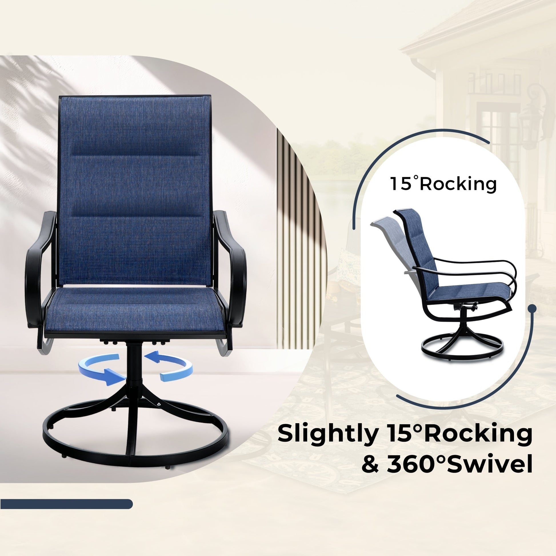 - 6 swivel armchairs with Textilene mesh fabric and a slightly rocking, ergonomic design for added comfort