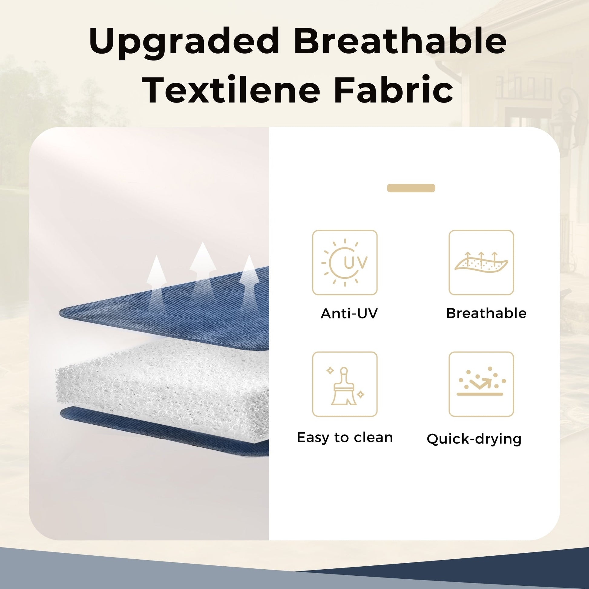 - Breathable sling fabric padded with fast dry foam on an extra wide seat and high back?