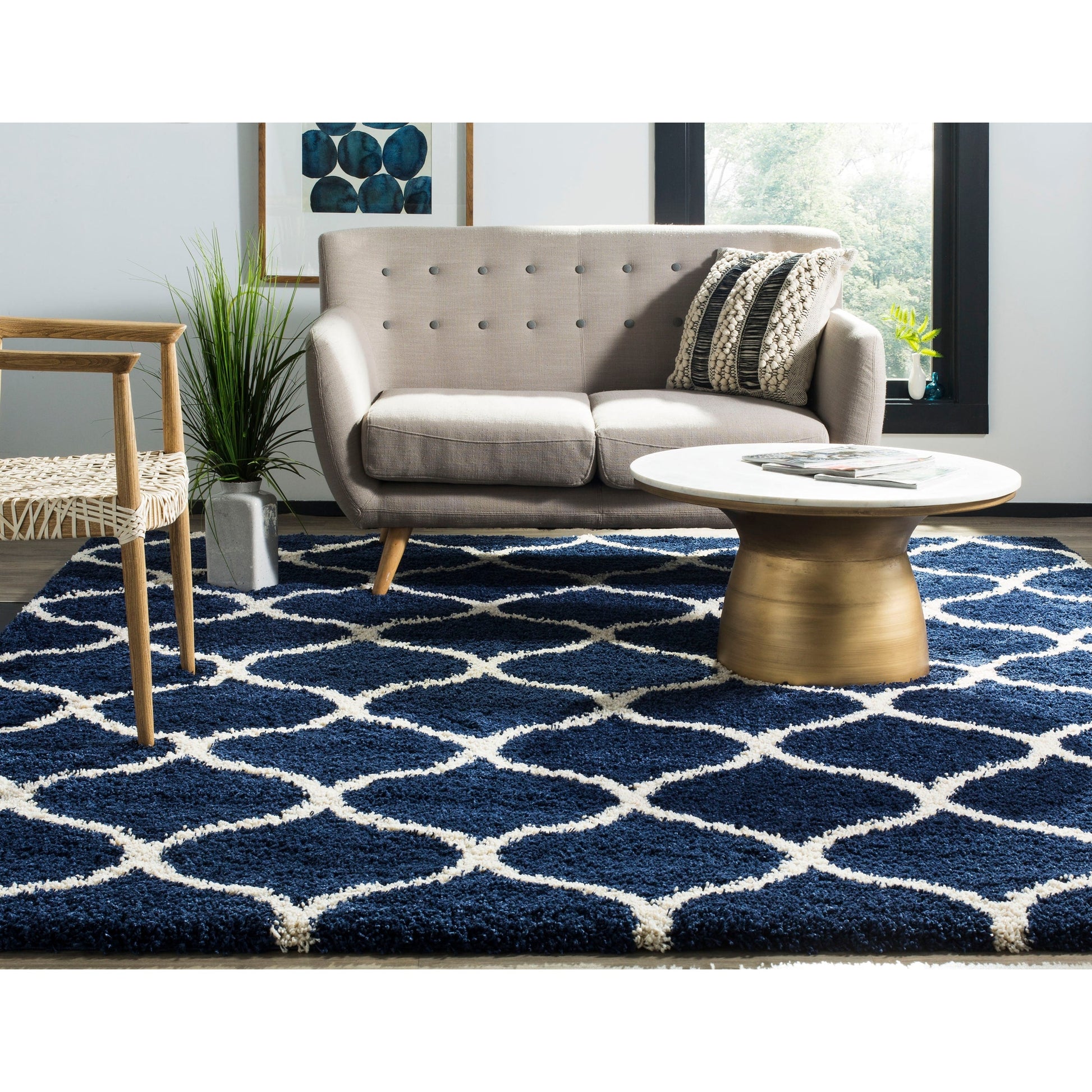 Introducing the SAFAVIEH Hudson Shag Ogee Trellis 2-inch Thick Area Rug, where fashion meets function. The luxurious shag pile showcases modern and Moroccan-inspired designs, making it the perfect choice for a contemporary, country, rustic or transitional style of room d茅cor. This rug is made from durable and easy-care yarns that can withstand high-traffic areas with frequent activity. With a 2-inch thick pile height, it provides just the right amount of cozy cushioned softness underfoot. Expertly machine-woven from enhanced soft synthetic durable fibers that have a virtually non-shedding pile for ultimate convenience. This rug is easy to maintain with regular vacuuming (without a beater bar) and gentle blotting of minor stains with a mild detergent or carpet cleaner.