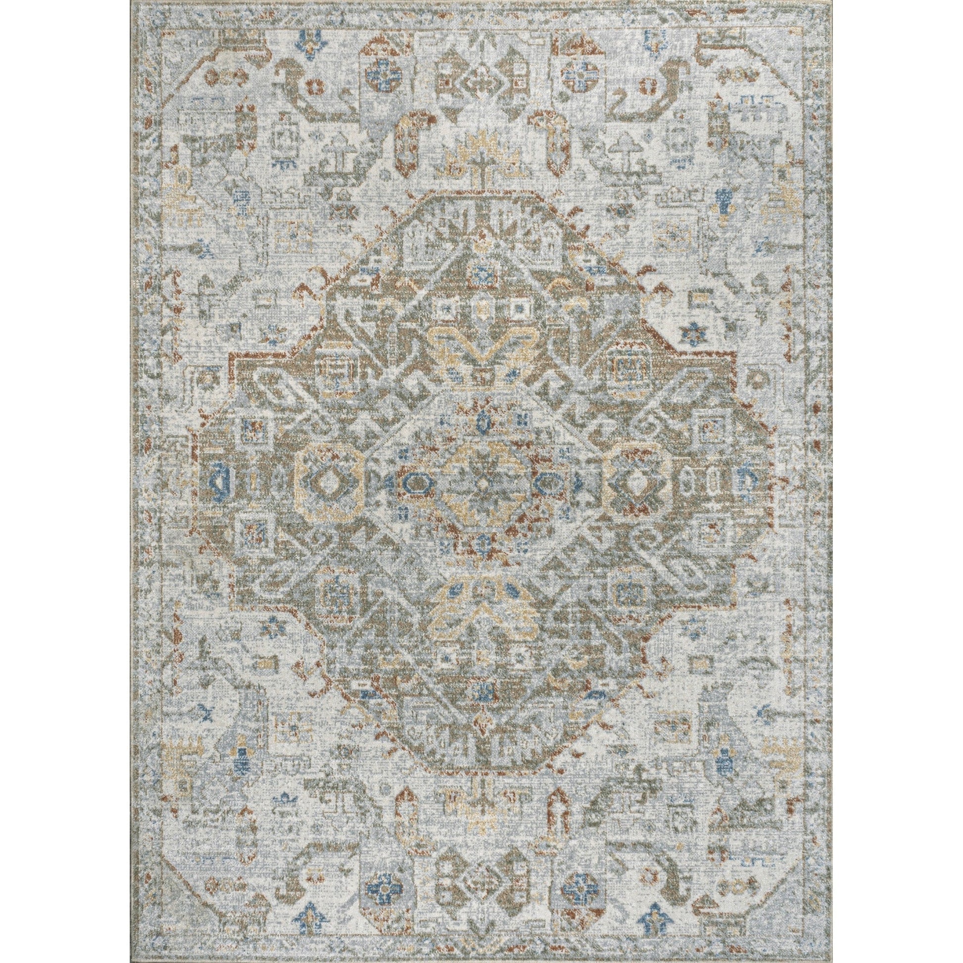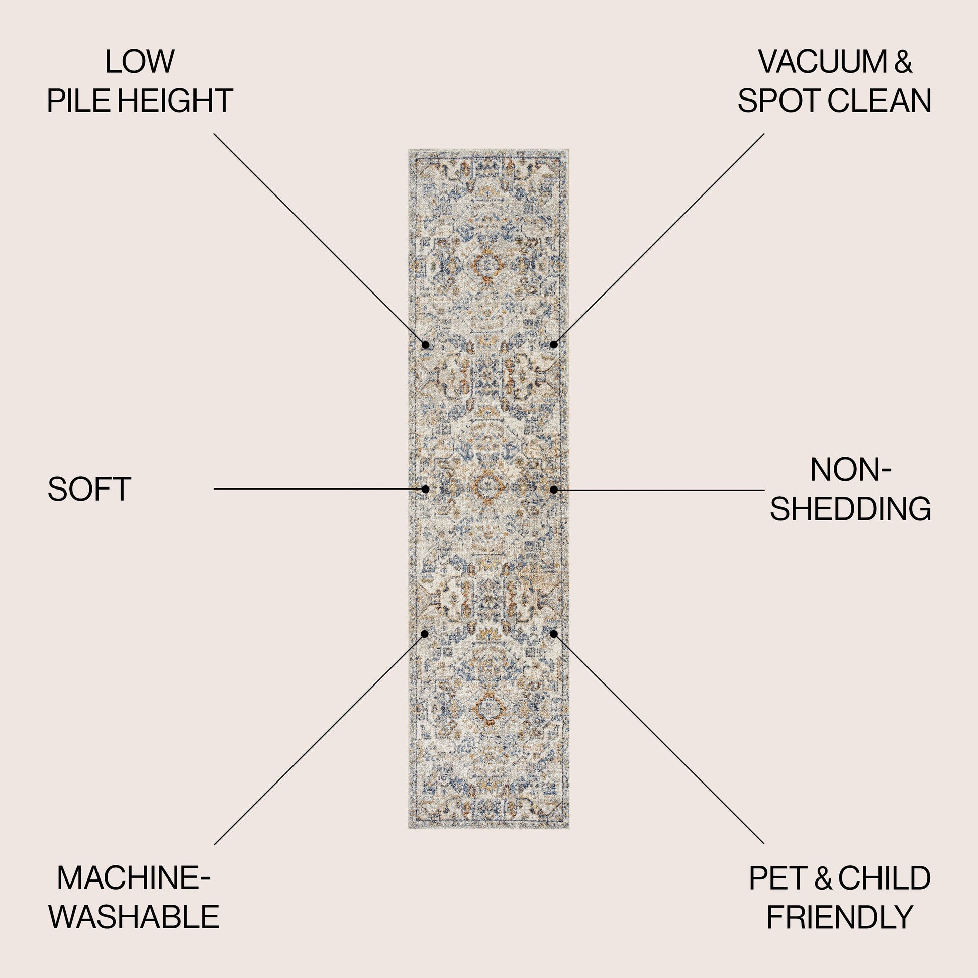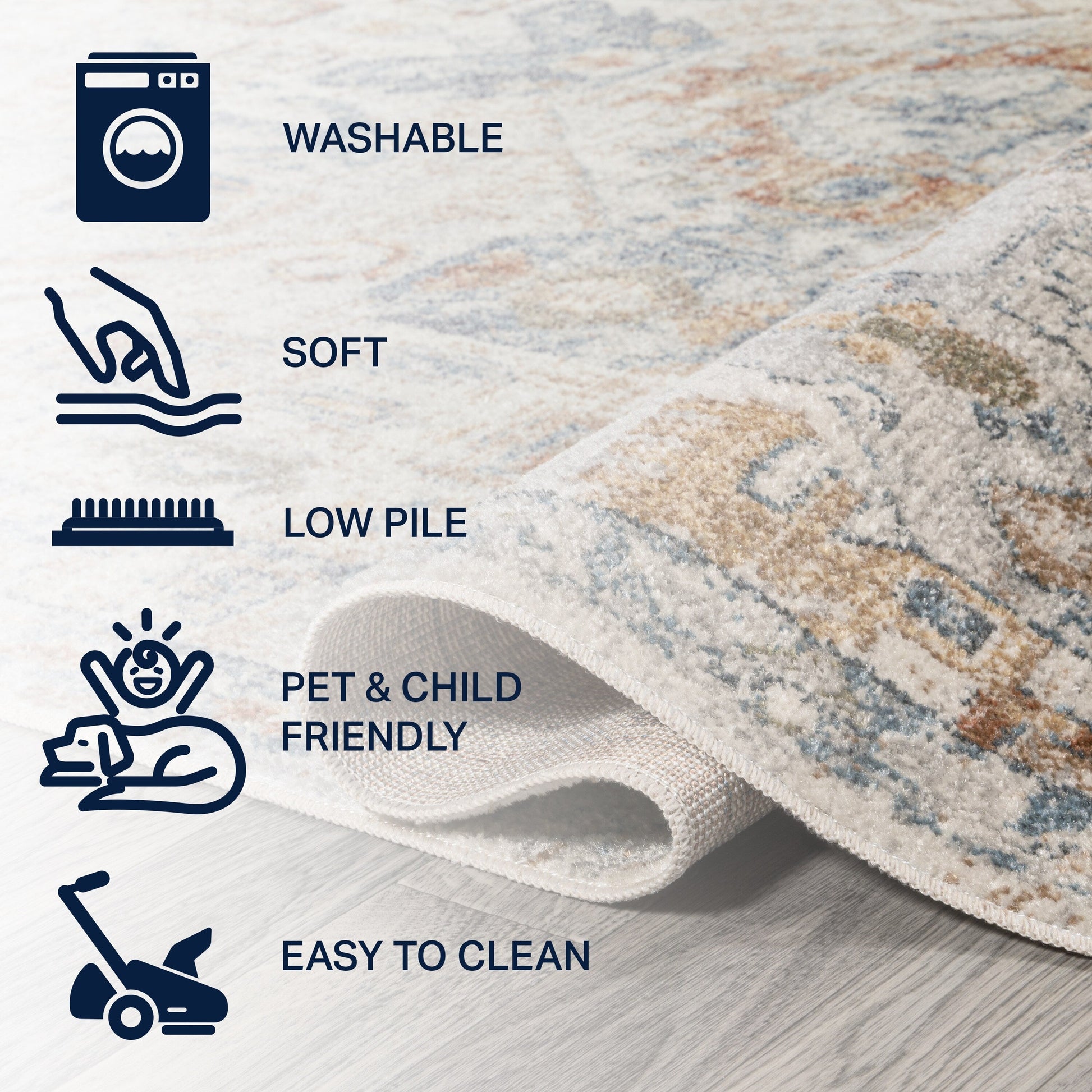 Tapis JONATHAN Y Brandy Bohemian Medallion à poils courts, lavable en machine, couleur crème/terre.