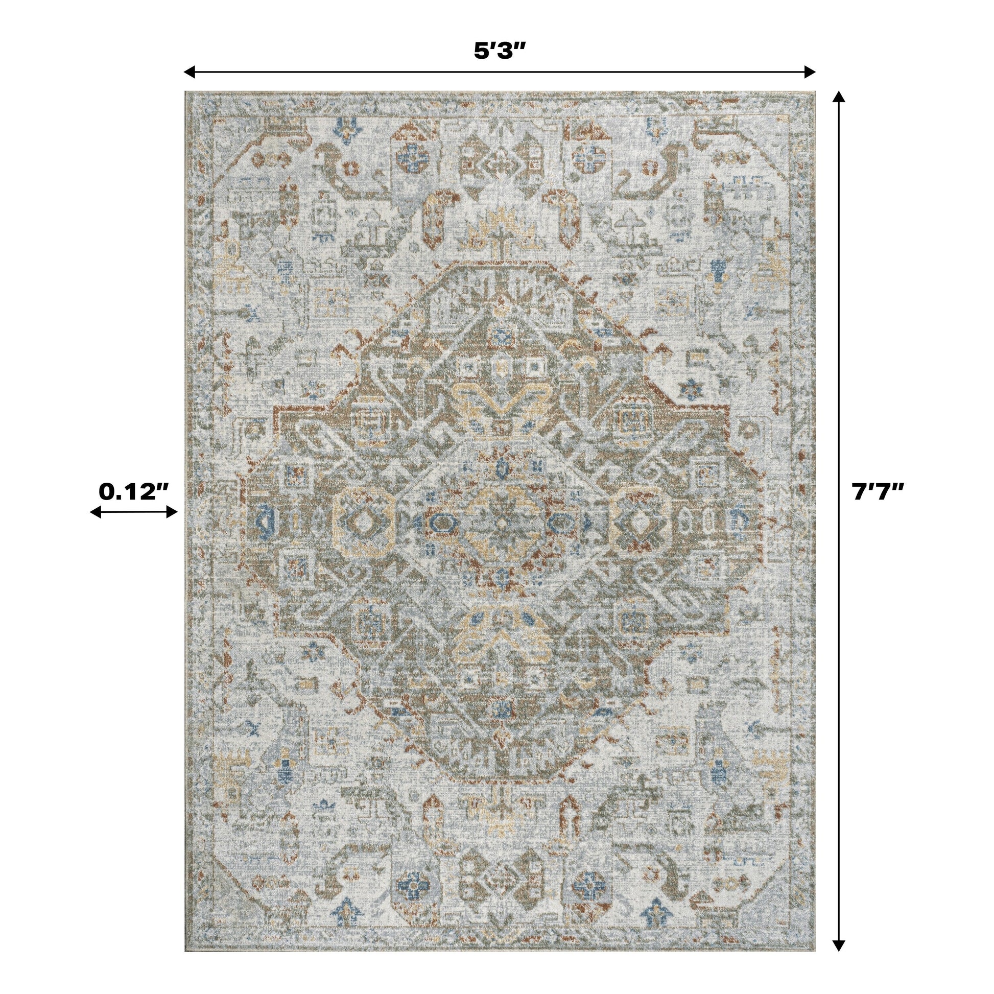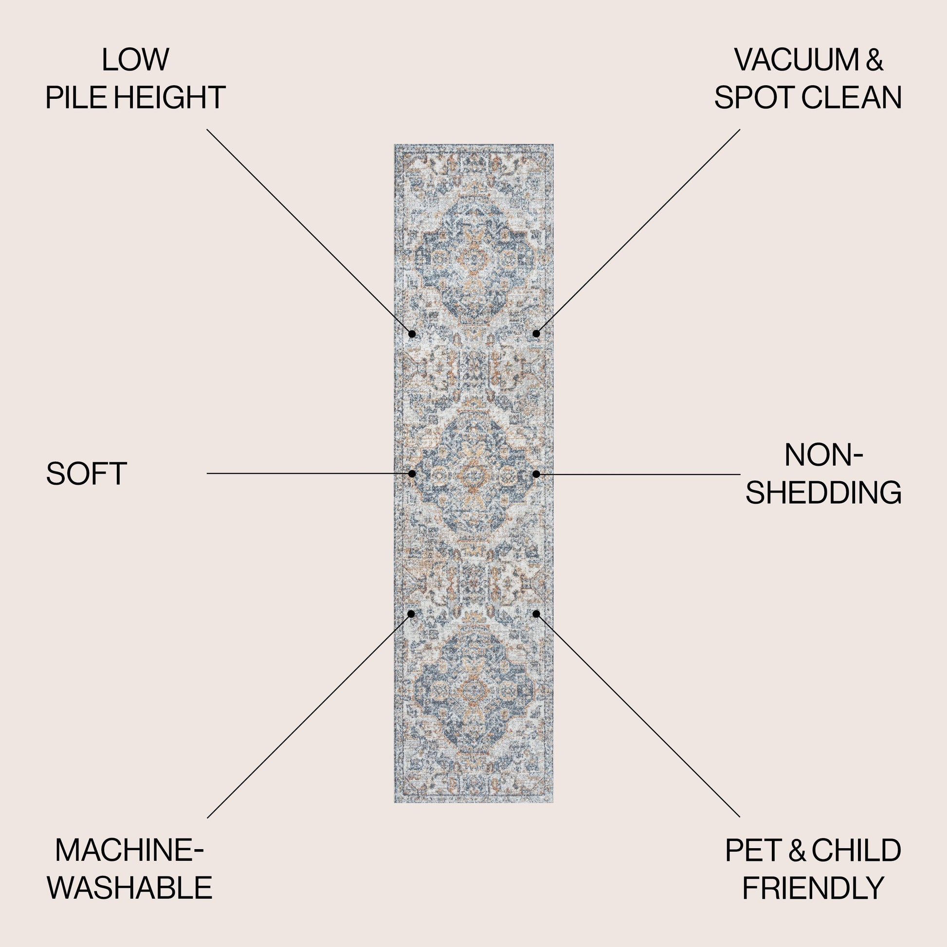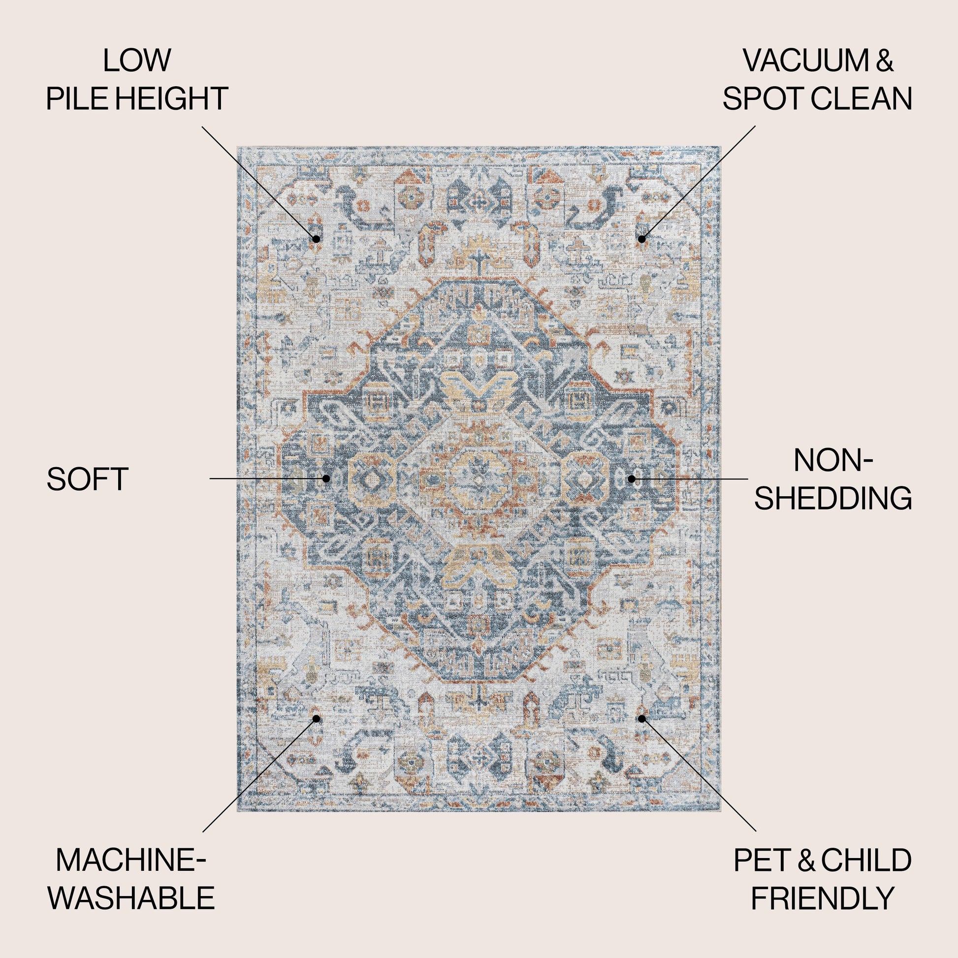 Tapis JONATHAN Y Brandy Bohemian Medallion à poils courts, lavable en machine, couleur crème/terre.