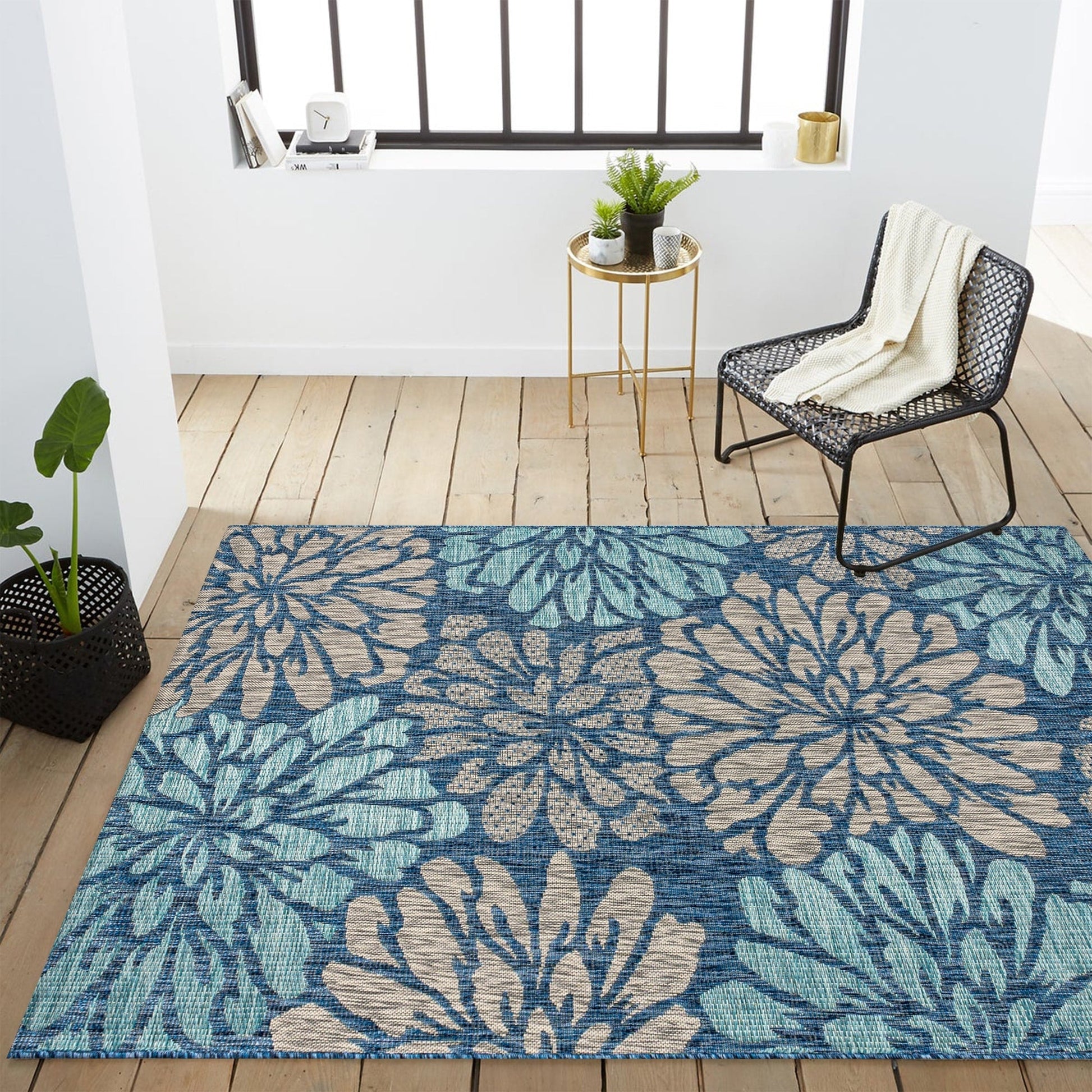 Tapis d'intérieur/extérieur JONATHAN Y à motif floral tissé texturé
