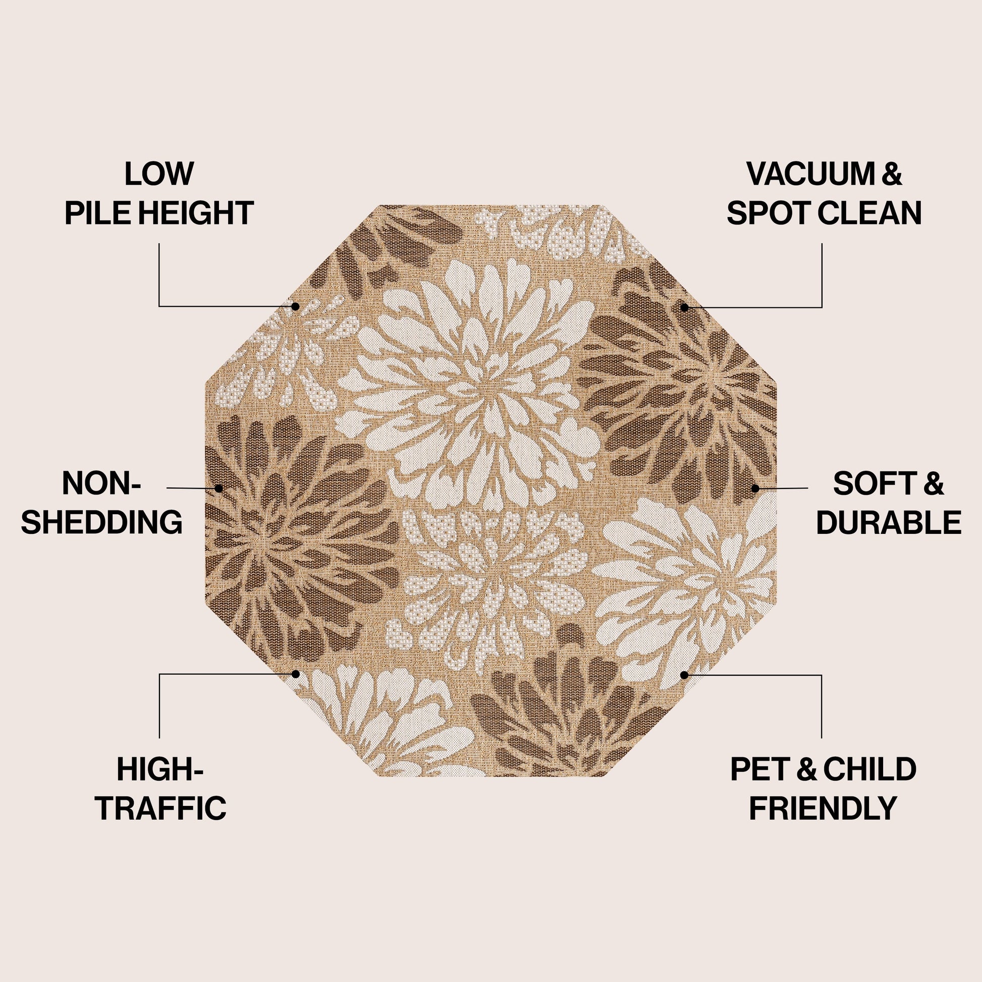 • Durable et facile d'entretien : il suffit de balayer ou de rincer à l'eau savonneuse.