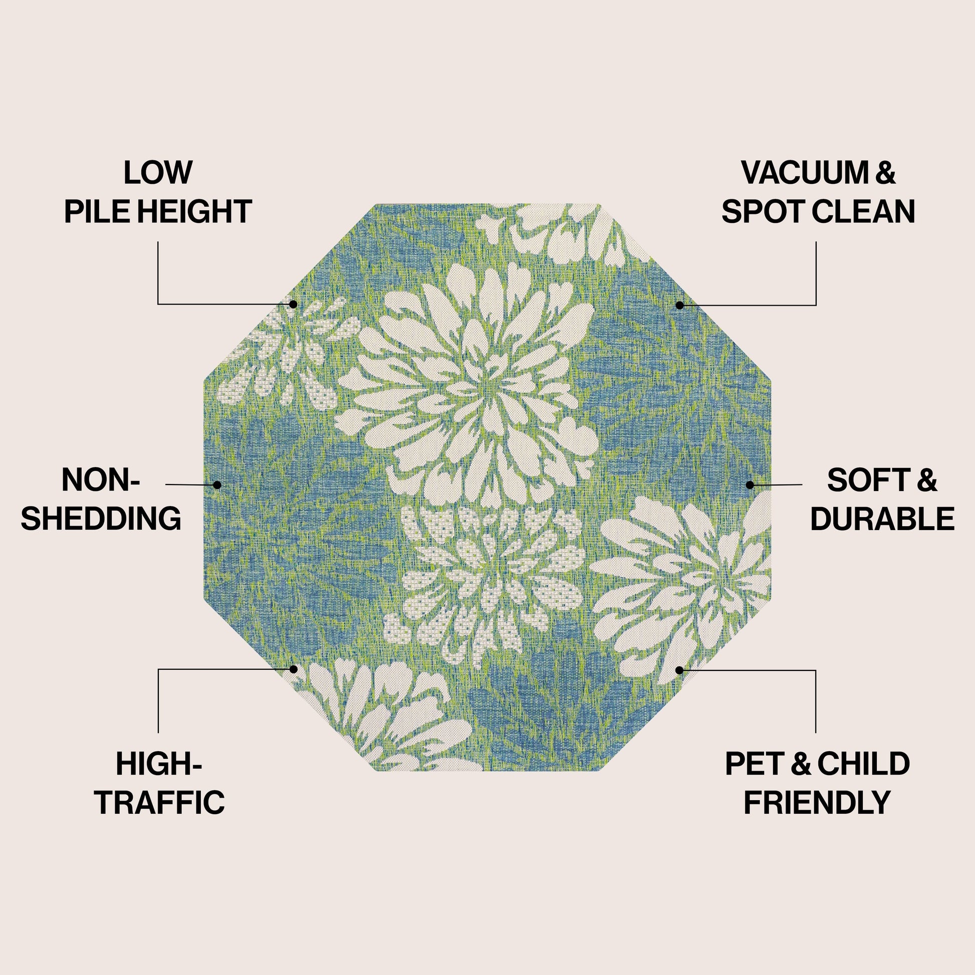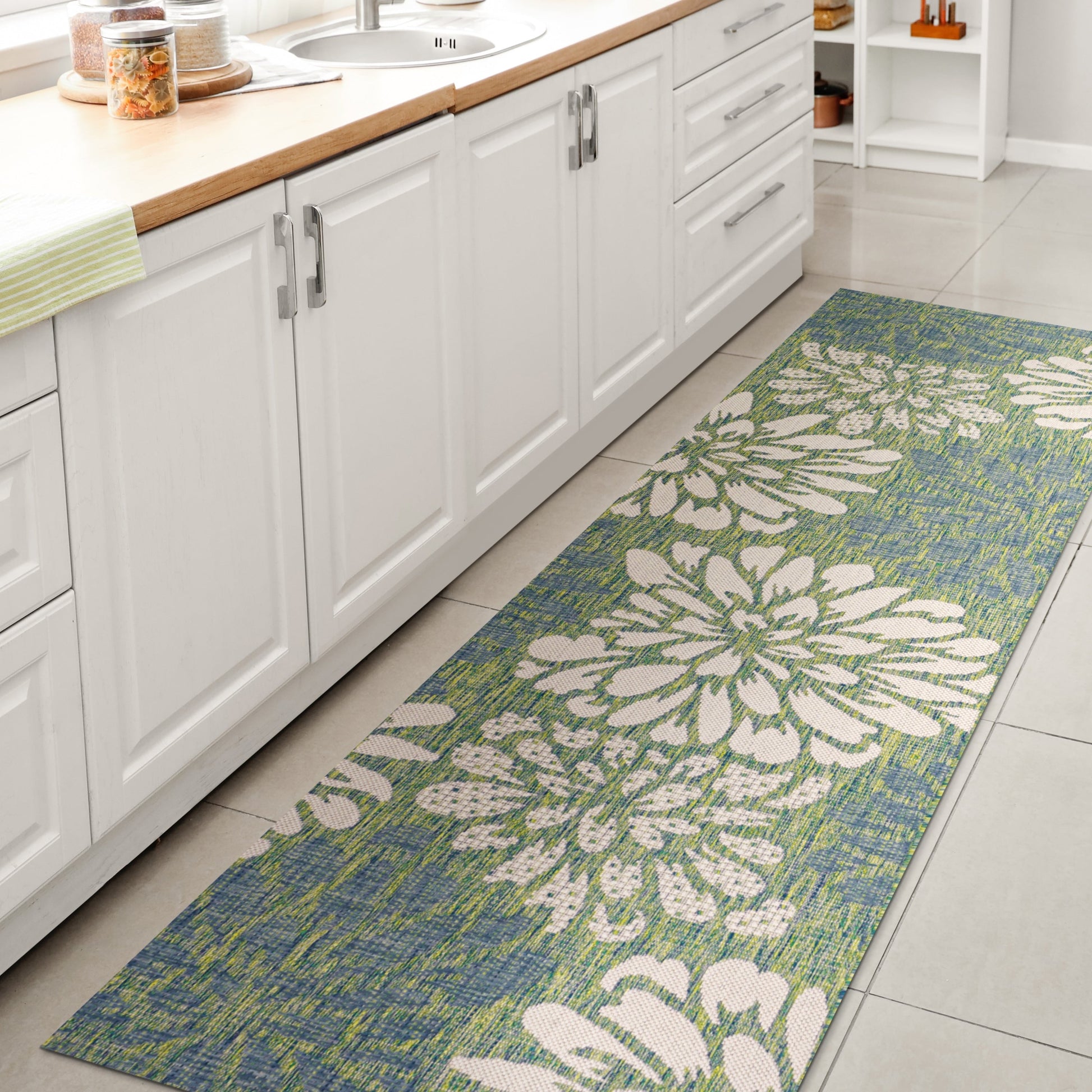 Tapis d'intérieur/extérieur JONATHAN Y à motif floral tissé...