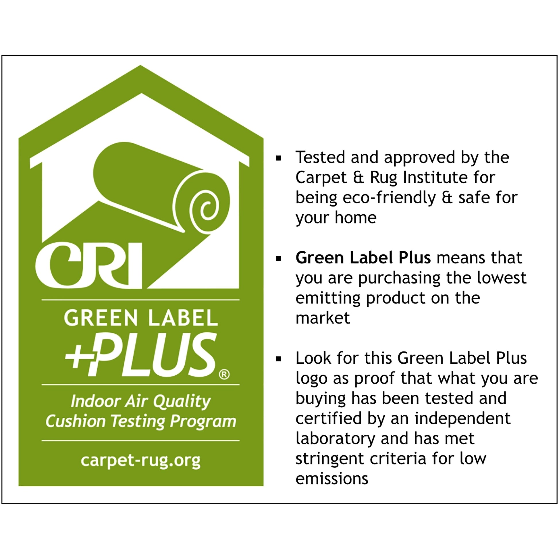 • LABEL VERT PLUS : Certifiés par le Carpet & Rug Institute, nos sous-tapis sont des produits écologiques de qualité supérieure présentant les émissions chimiques les plus faibles du marché.