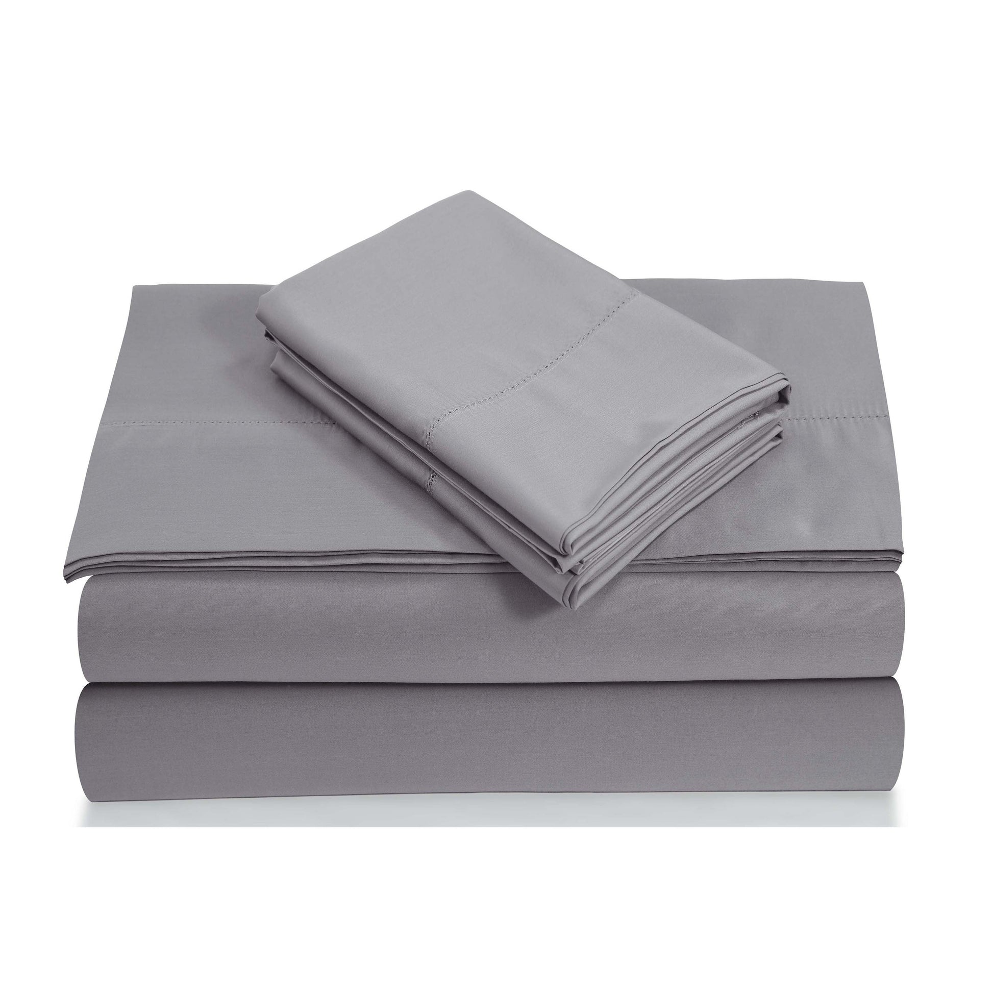 - Set includes 1 flat sheet, 1 fitted sheet, and 2 pillowcases