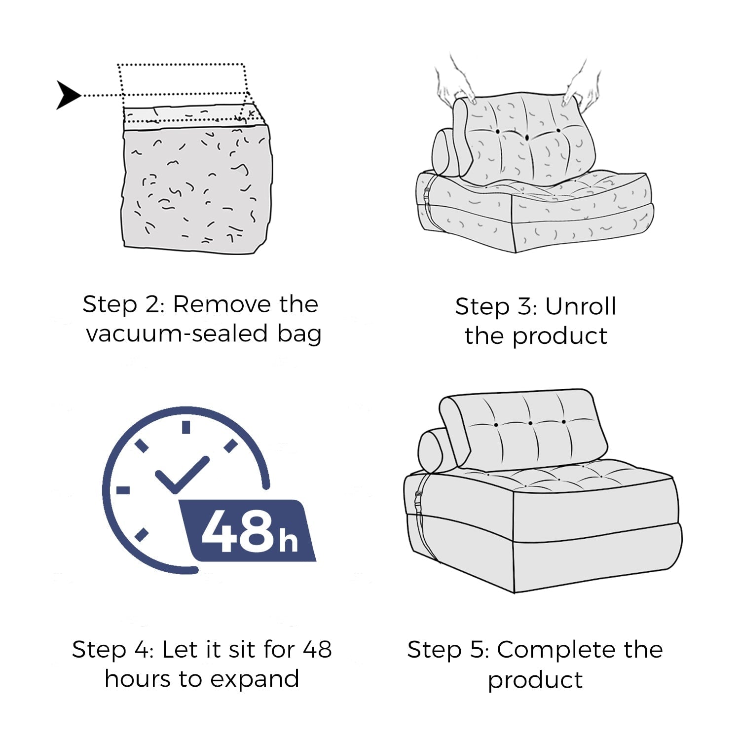 - Convenient Shipping & Setup:Compressed and vacuum-sealed for shipping efficiency; allow 48 hours after unpacking for the sofa bed to regain its original shape.