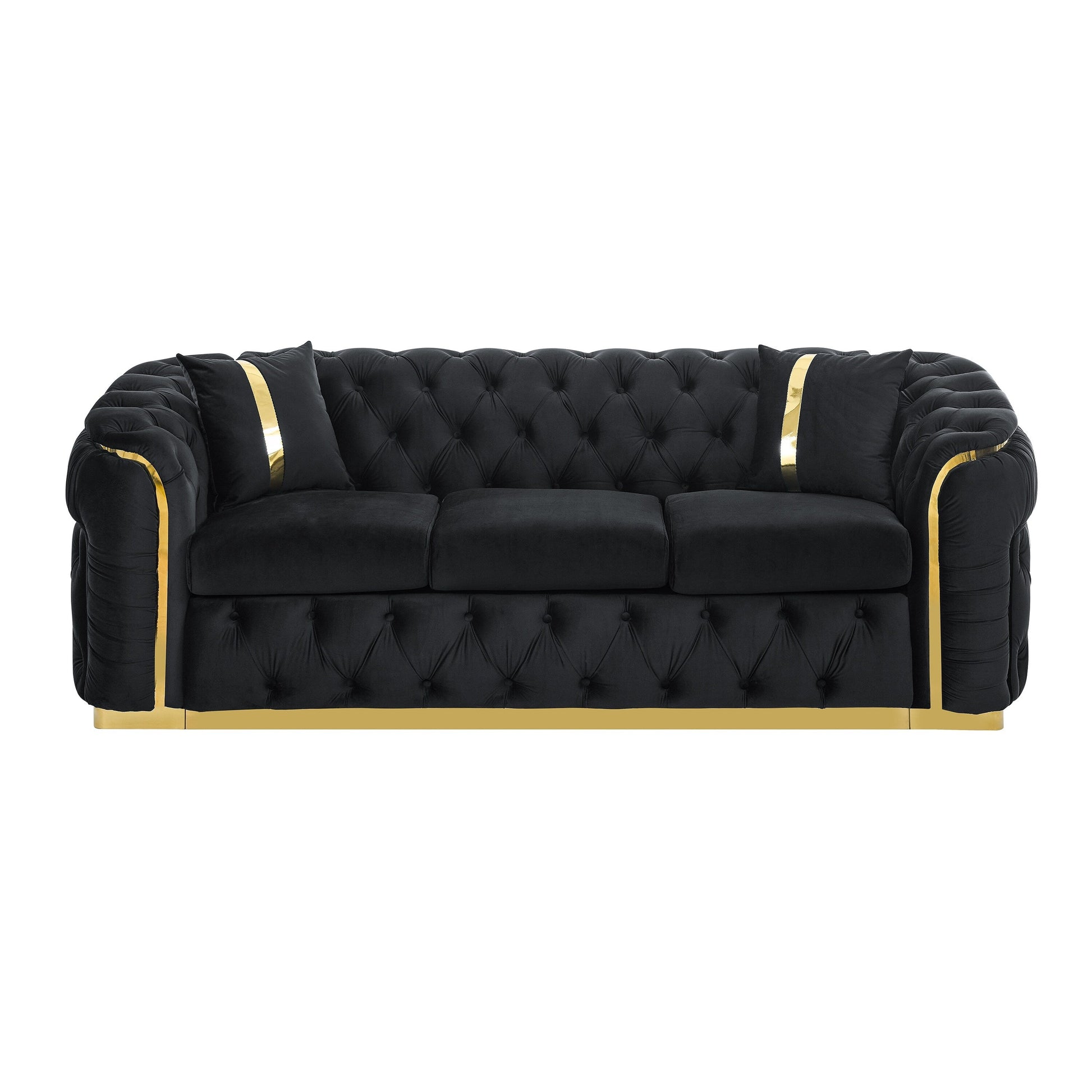 90.6 Velvet 3-Seater Sofa with 2 Pillows High-Density Cushions, Gold Accents, and Pillows