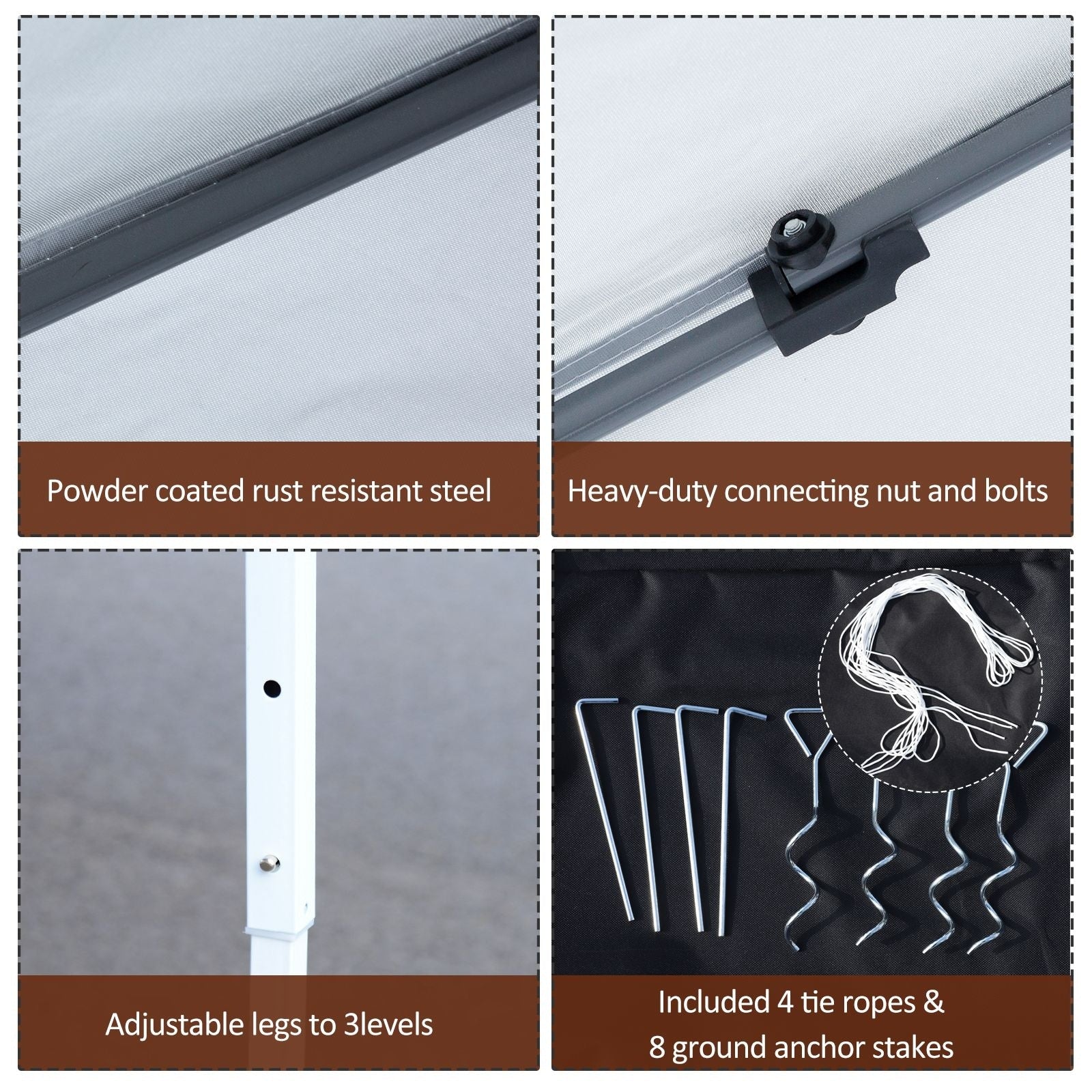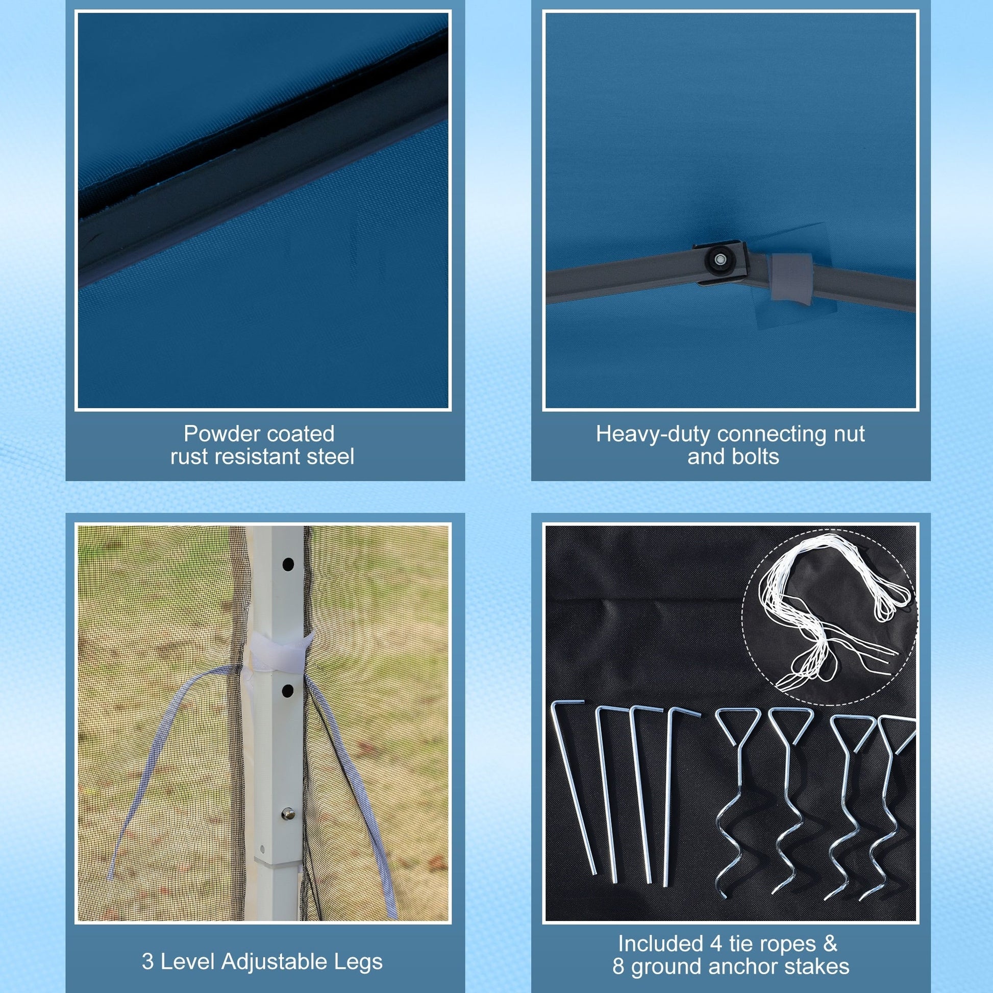 Auvent pop-up robuste Outsunny 10' x 10' avec filet latéral amovible en maille, conception facile à installer, événement de fête en plein air