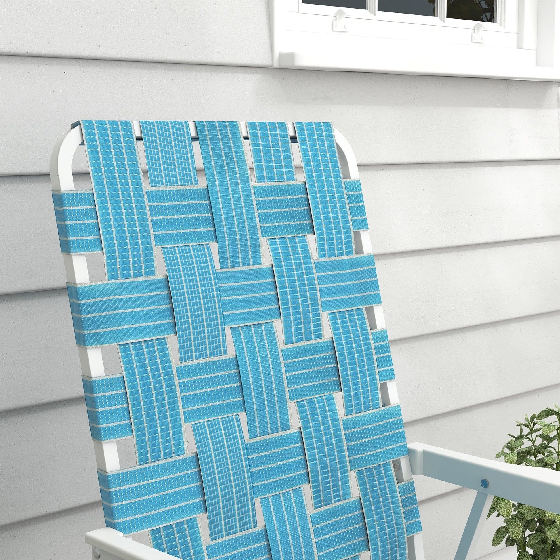 Outsunny has a set of lightweight, portable, adult-sized folding chairs. They make great lawn chairs, camping chairs, or extra seating for outdoor events. This chair set folds flat, fitting in the trunk of your car as a travel companion. Powder-coated steel gives each chair a high capacity and a weather-ready build. Made breathable with woven straps, our folding lawn chair set keeps you cool in the hot summer sun. Get out, get comfy, get Outsunny.