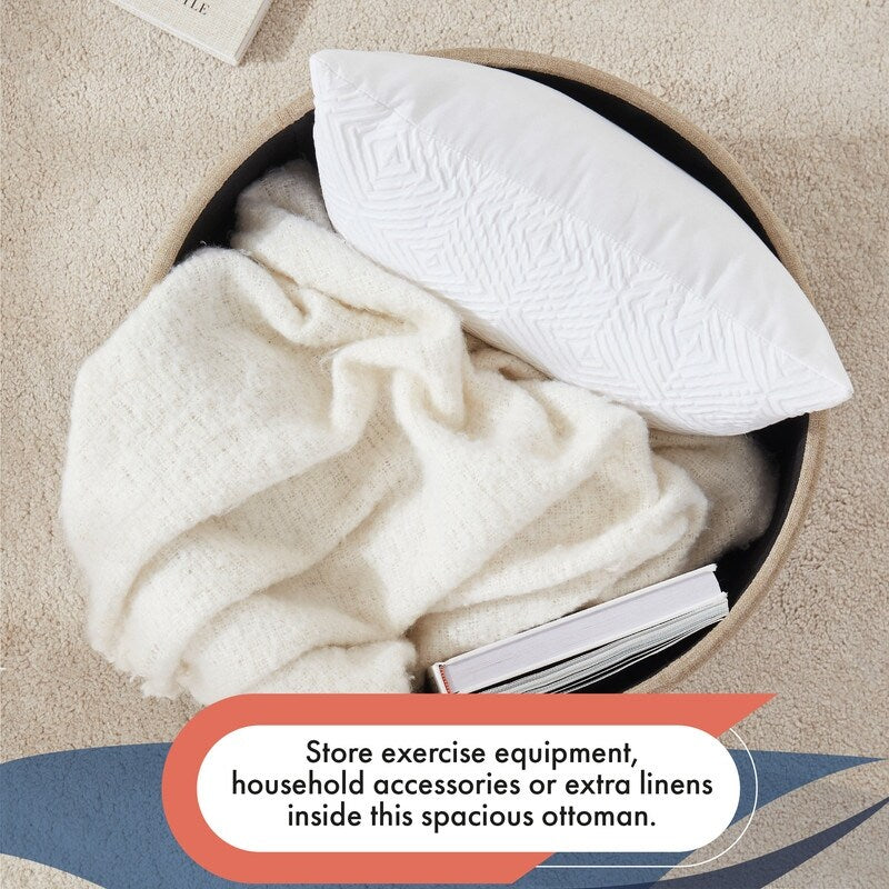 Add a touch of modern style and practicality to your living room with the Donovan Tufted Round Storage Ottoman. With its thick cushioning and touchable texture, it provides a comfortable place to sit or rest your feet. The round shape and tufted lid also add a contemporary touch to your decor while providing plenty of storage space inside. Choose from 9 different colors to match your living area perfectly.