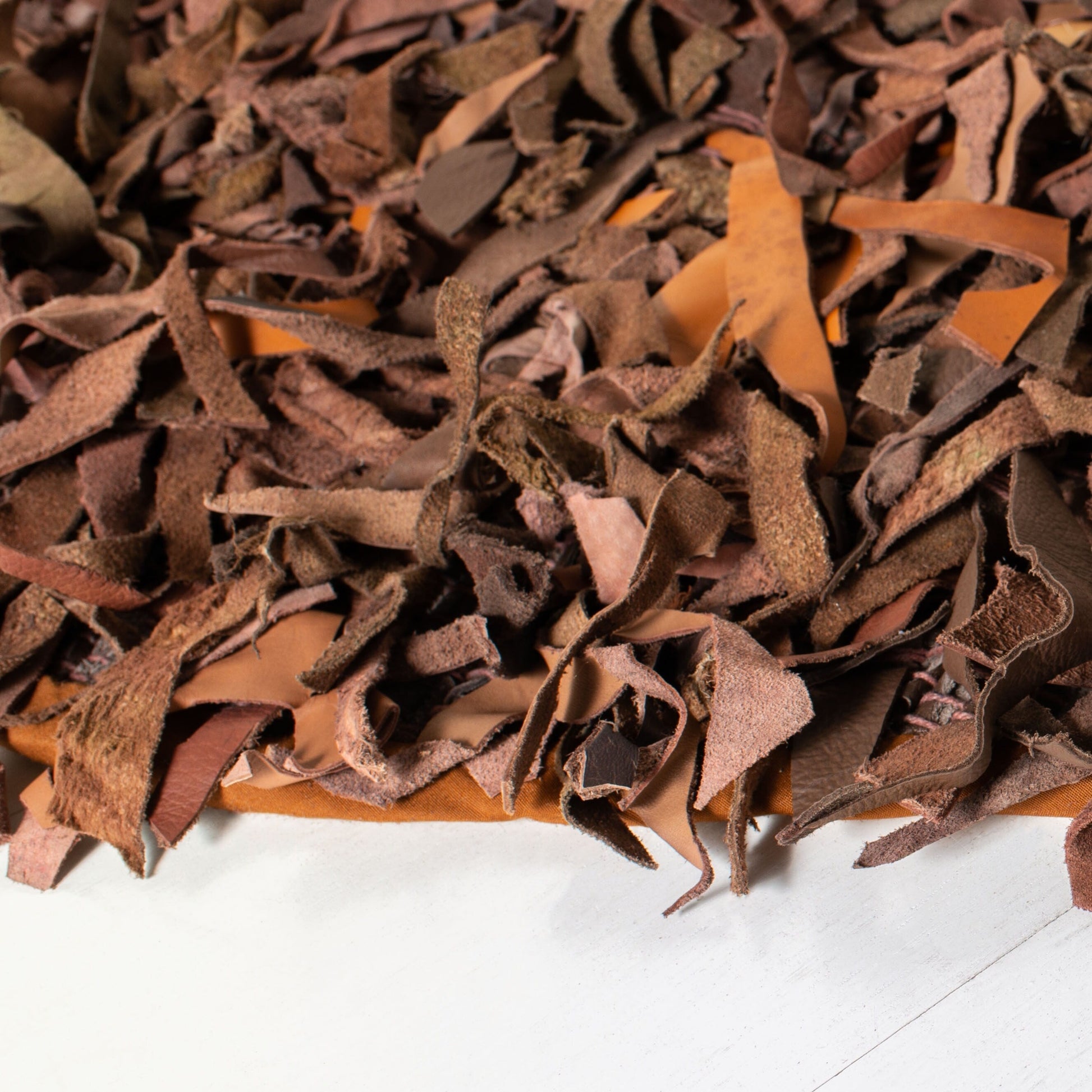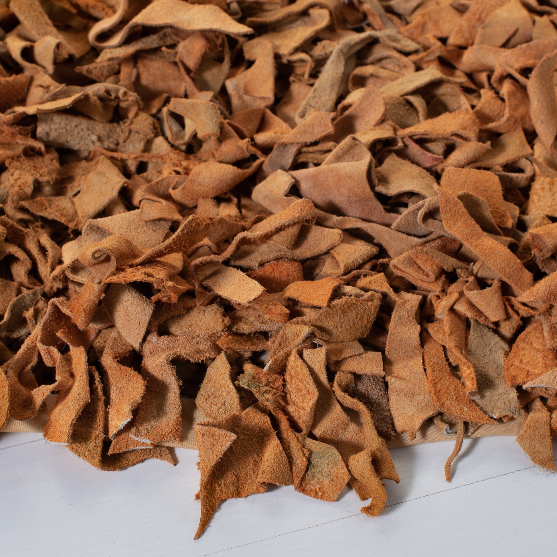 Apportez une touche chic et moderne à votre intérieur avec le tapis décoratif Carlijn en cuir véritable fait main de SAFAVIEH. Ce tapis est composé de bandes de cuir suédé doux et authentique aux tons chauds, nouées à la main pour créer une texture luxueuse qui rehausse l'esthétique de n'importe quelle pièce.