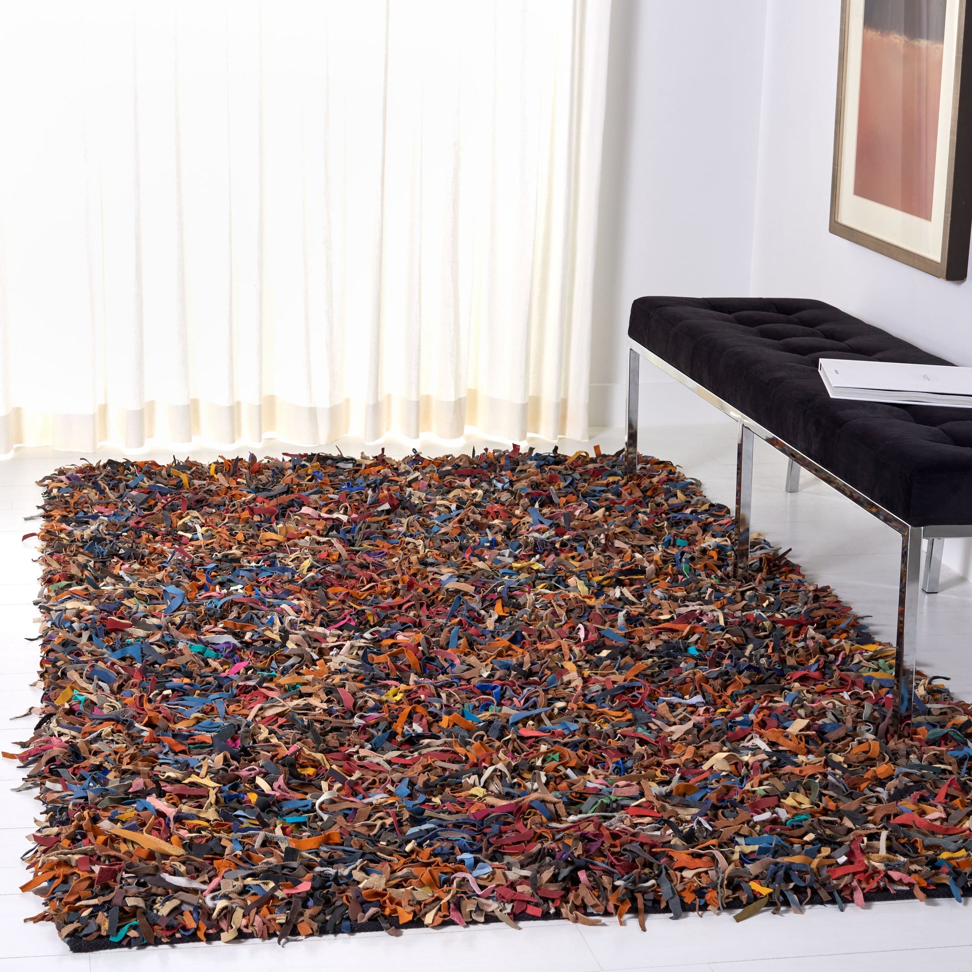 • Faisant partie de la collection Leather Shag de SAFAVIEH, gage de qualité et de style dans le savoir-faire artisanal en matière de tapis, ce modèle est un véritable bijou.