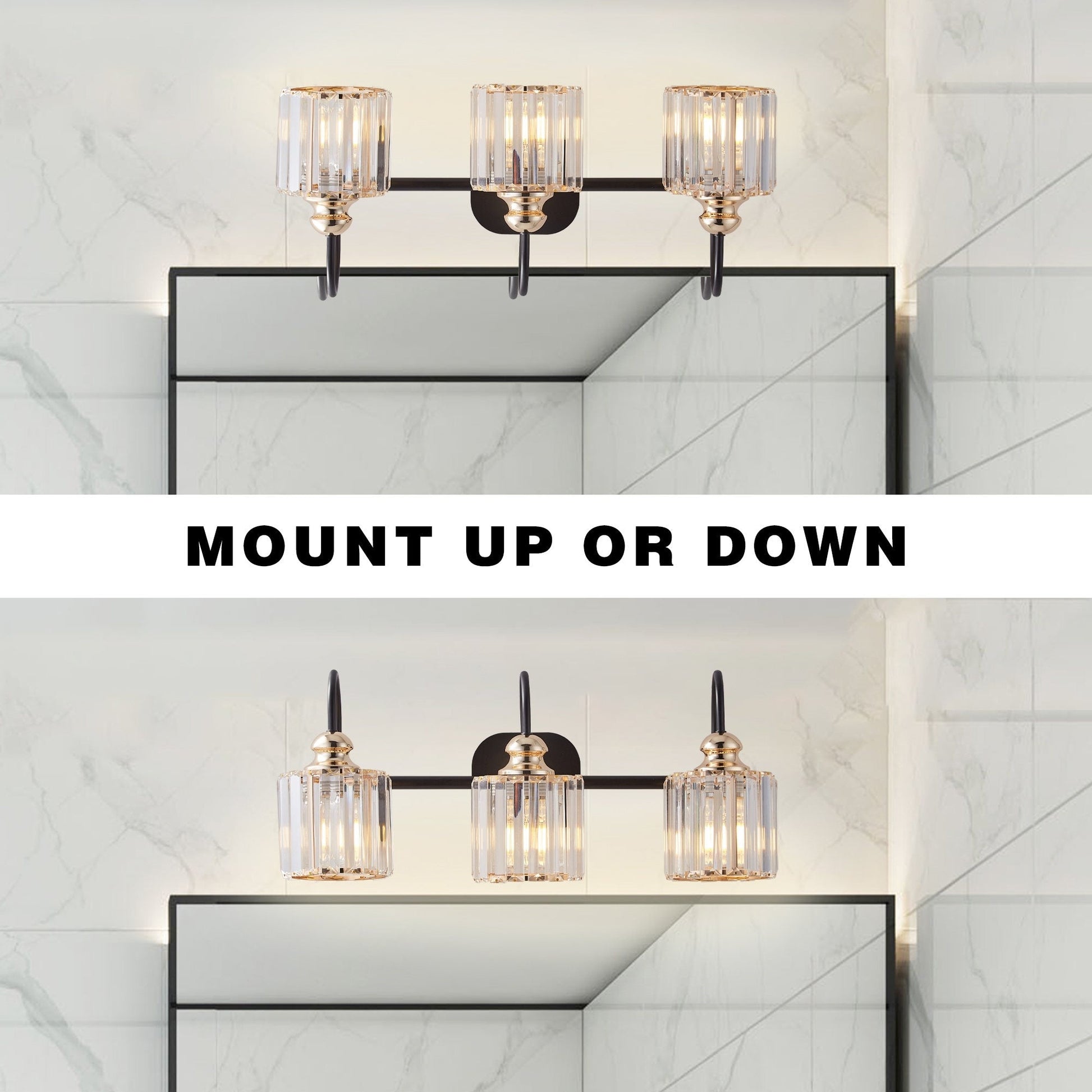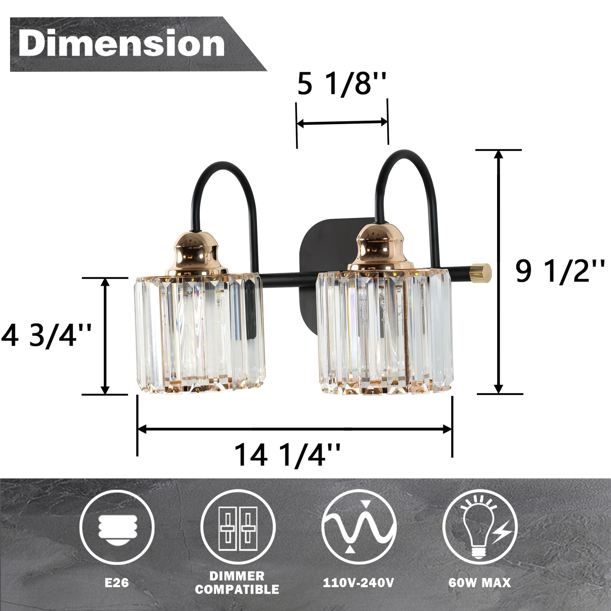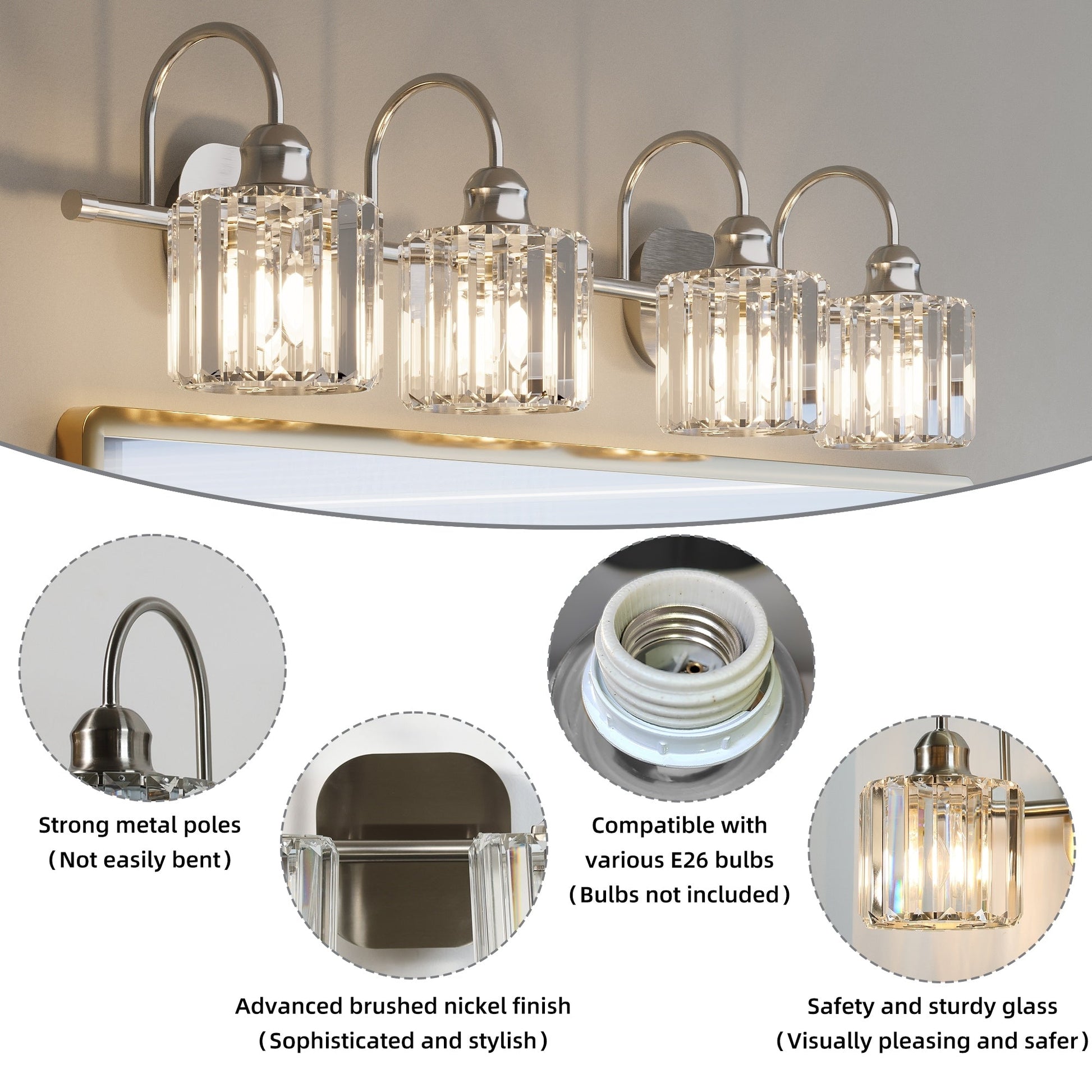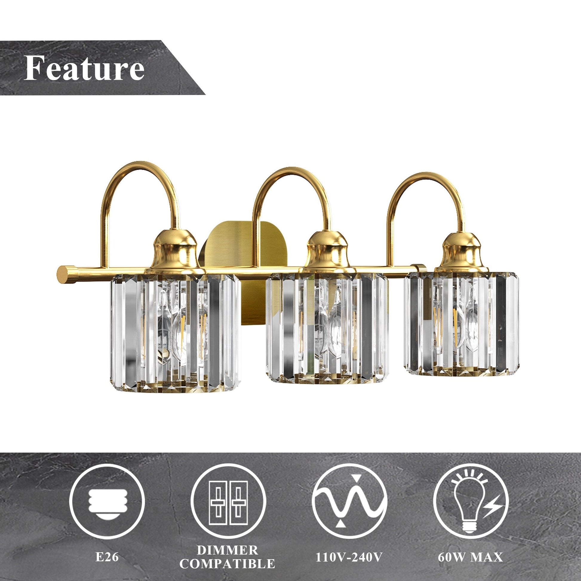 Bring a touch of luxury and sophistication to your bathroom with ExBrite Modern Rose Gold Vanity Lights. These 3/4-light wall sconces not only provide bright illumination, but also enhance the overall decor of your bathroom. Made with high-quality black metal and rose gold accents, along with premium transparent crystal lampshades, these lights are a perfect blend of style and functionality. The lights are compatible with E26 base LED bulbs, halogen bulbs, incandescent bulbs, and energy-saving bulbs. Note that bulbs are not included.