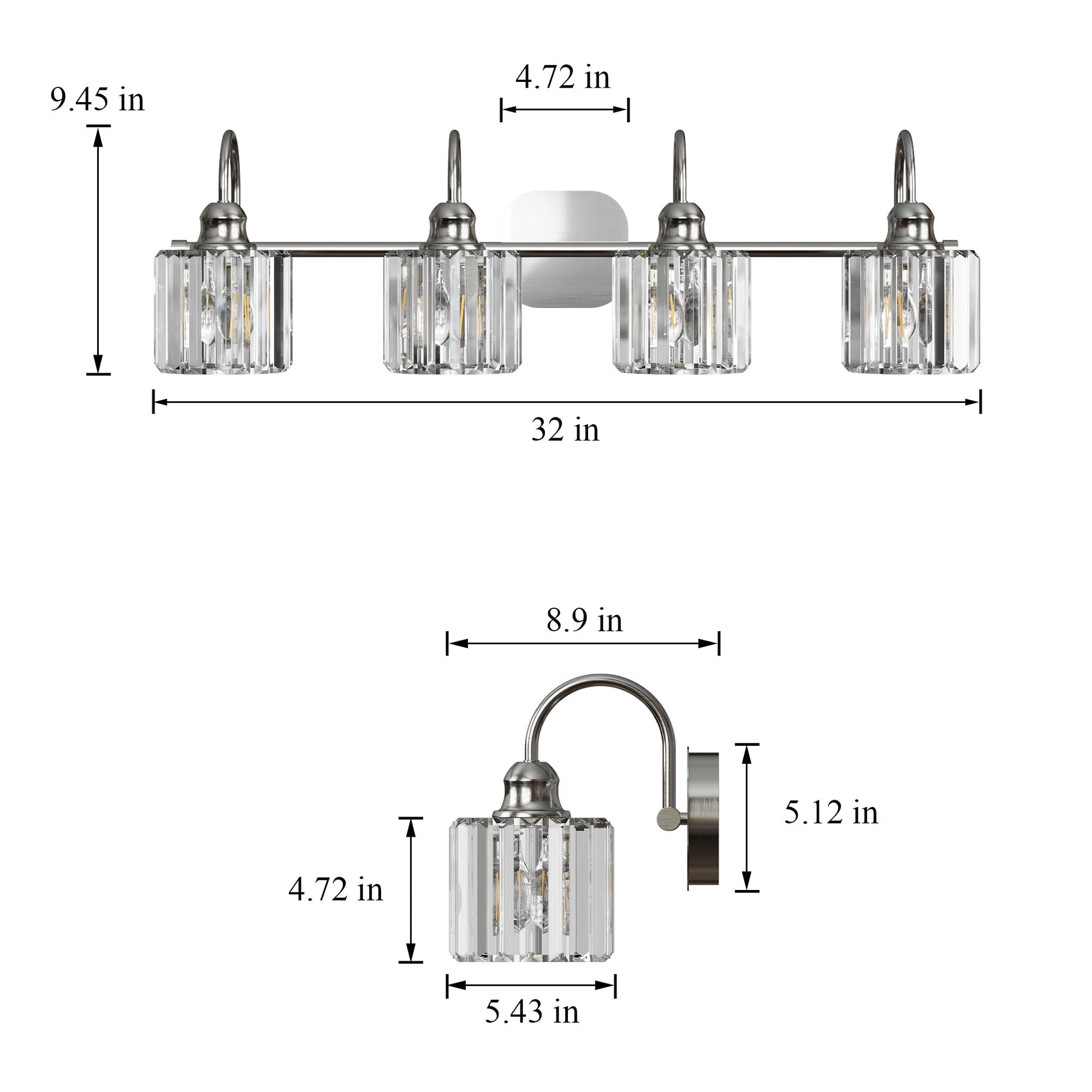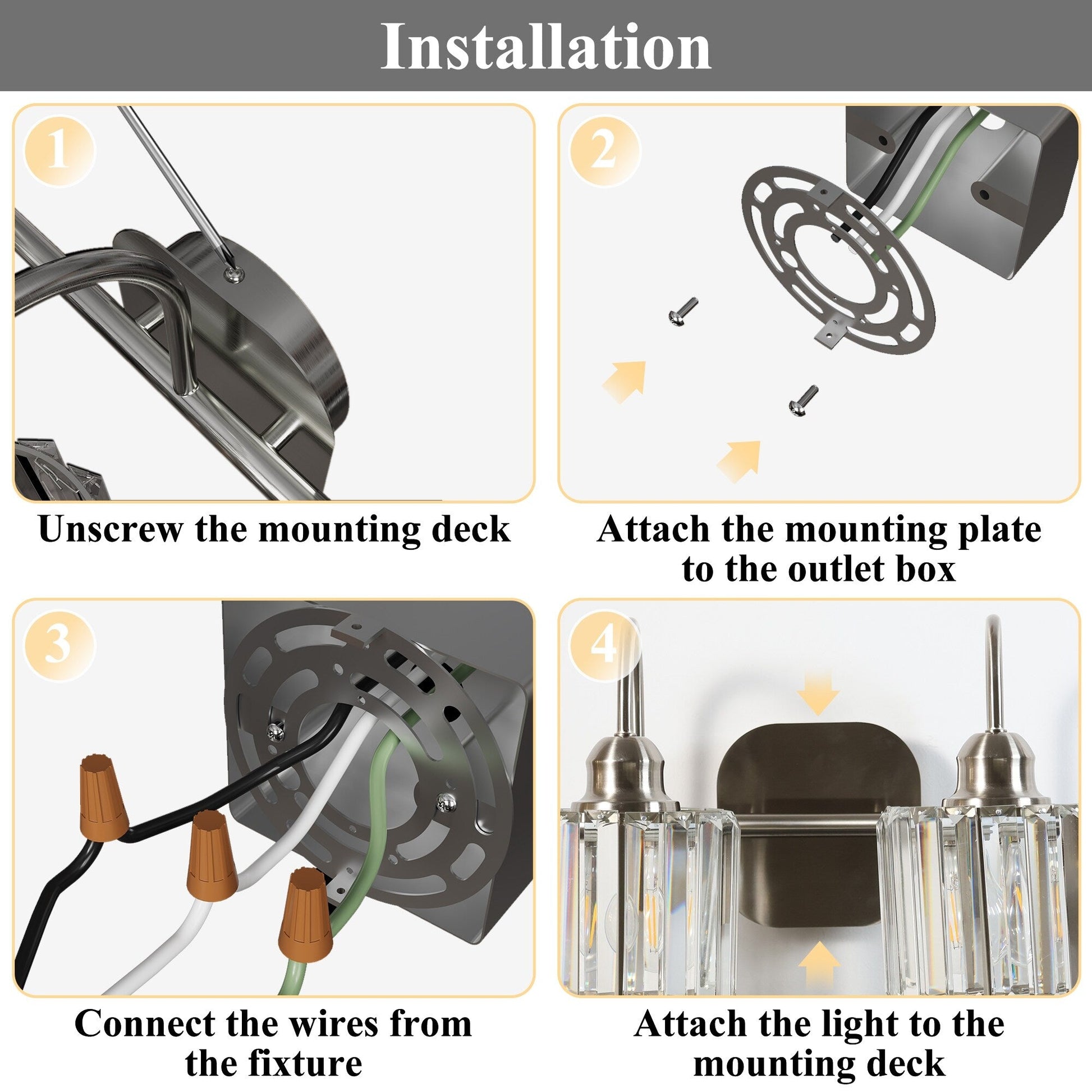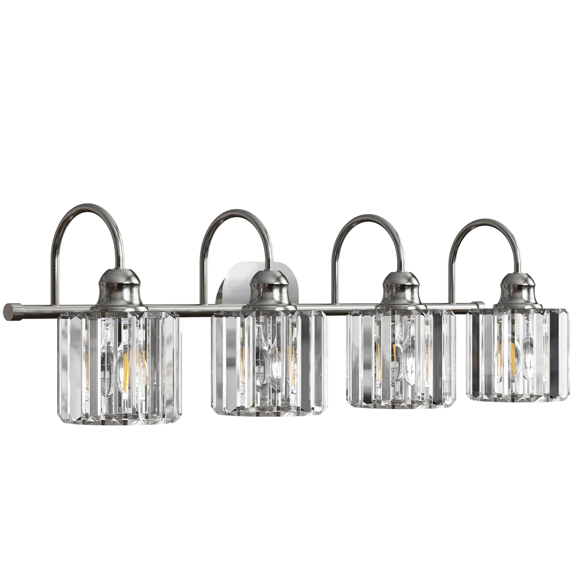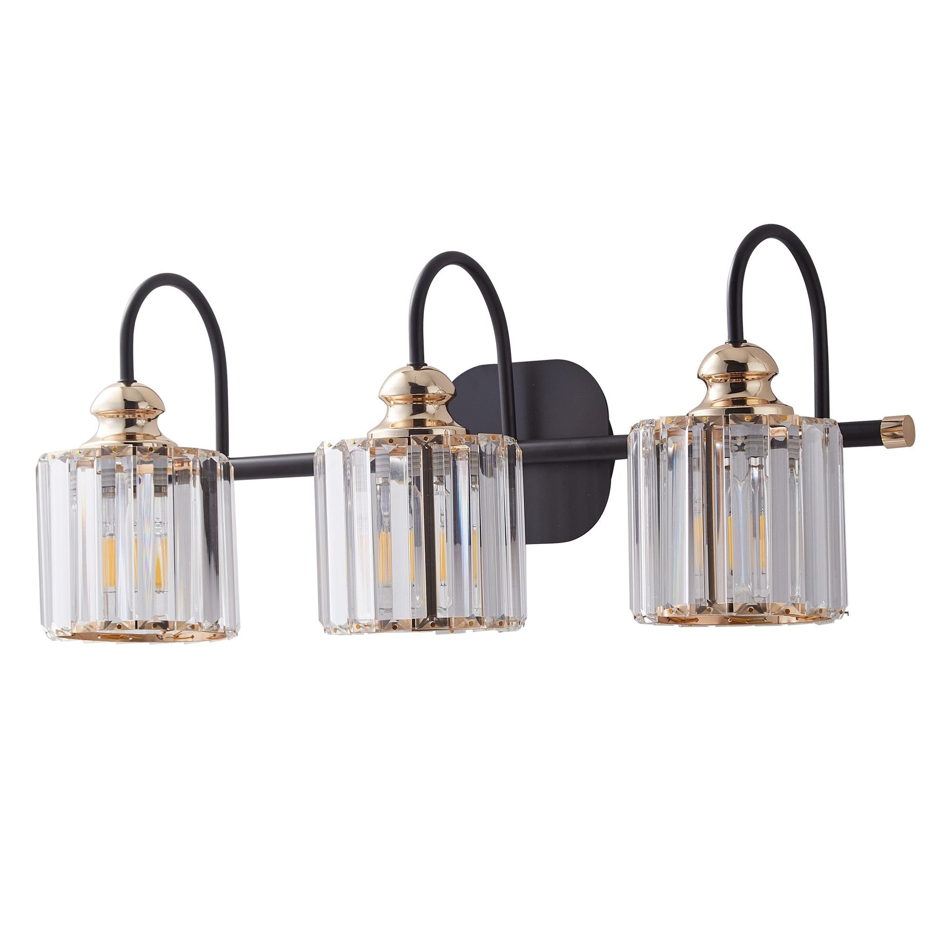 Bring a touch of luxury and sophistication to your bathroom with ExBrite Modern Rose Gold Vanity Lights. These 3/4-light wall sconces not only provide bright illumination, but also enhance the overall decor of your bathroom. Made with high-quality black metal and rose gold accents, along with premium transparent crystal lampshades, these lights are a perfect blend of style and functionality. The lights are compatible with E26 base LED bulbs, halogen bulbs, incandescent bulbs, and energy-saving bulbs. Note that bulbs are not included.