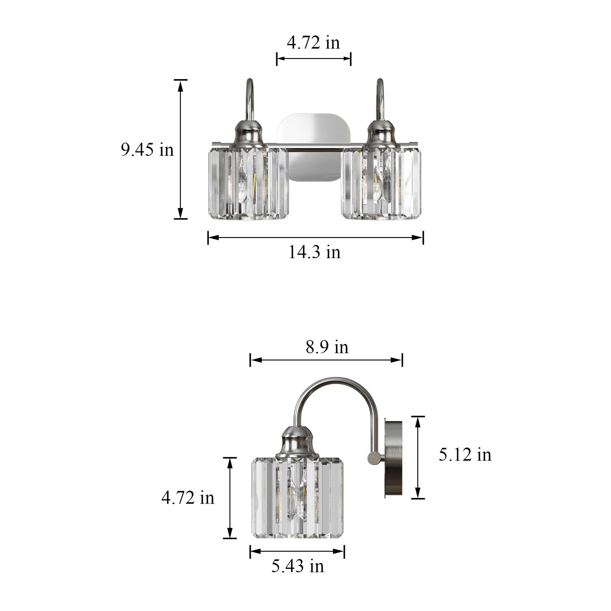 - Size: 23.13 inches in length, 9.5 inches in width, and extends 8.88 inches from the wall