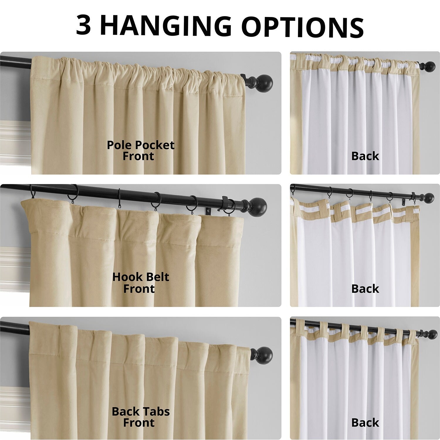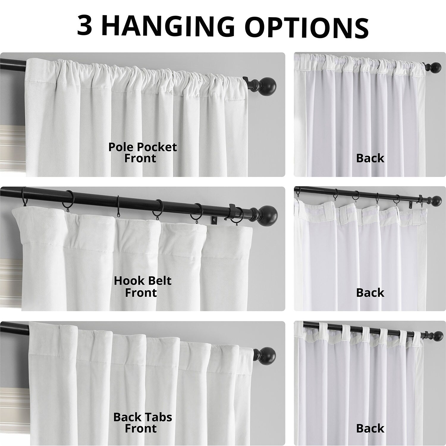Add a touch of elegance to your home with these Exclusive Fabrics Signature Blackout Velvet Curtains. Made of high-quality poly velvet and soft polyester blackout lining, these curtains provide optimal insulation and effectively block out light. Each curtain panel features a 3-inch pole pocket header with hook belt and back tabs for easy installation. The weight at the bottom ensures the curtains hang beautifully. Choose from a variety of solid hues to complement your home décor.