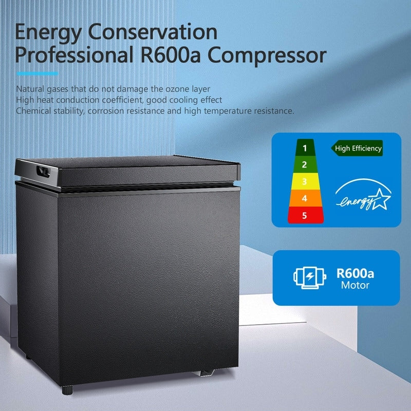 Ce congélateur coffre de 1,8 pi³ est une solution pratique pour tous ceux qui ont besoin de plus de congélation sans prendre trop de place. Avec ses 7 réglages de température, de -25 °C à 19 °C, vous pouvez facilement conserver tous vos aliments, des fruits de mer et viandes aux glaces et plats surgelés. Son niveau sonore de 40 dB ou moins garantit un environnement paisible. Il est équipé d'un compresseur R600a écoénergétique pour un refroidissement rapide et une faible consommation d'énergie, contribuant ainsi à réduire votre facture d'électricité. Malgré sa taille compacte, il offre un grand espace de rangement avec ses dimensions de 62 x 62 x 43 cm, ce qui le rend idéal pour les maisons, les appartements ou les petits espaces. La porte à charnières s'ouvre en douceur de 45° à 90°, permettant un accès mains libres facile. De plus, le dégivrage manuel préserve la fraîcheur tout en économisant de l'énergie, et le drain de dégivrage frontal facilite et accélère le nettoyage. Ce congélateur allie praticité, efficacité et praticité, ce qui en fait un atout précieux pour tous les intérieurs.