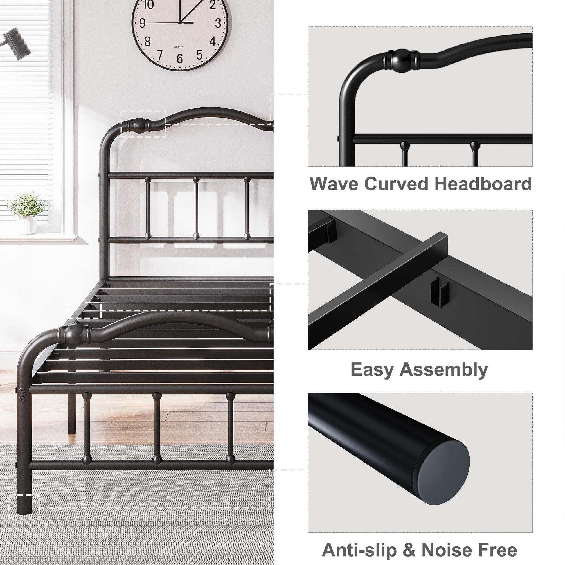 Cadre de lit en métal robuste de 14 pouces de haut avec style vintage, supporte jusqu'à 2500 lb, assemblage facile et sans grincement