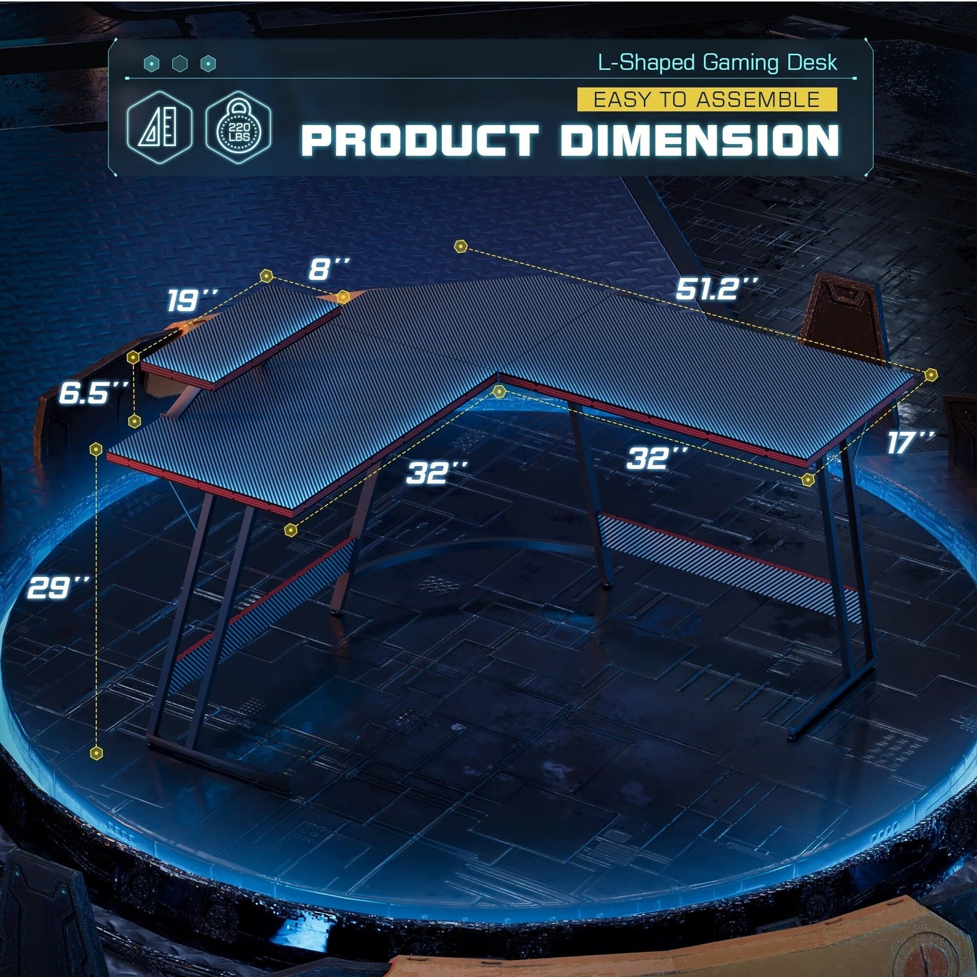 - Sleek Elegance: The gaming desk boasts a stylish design with a glossy carbon fiber surface that is both anti-skid and anti-scratch, enhancing its delicate appeal. The dark red pattern mezzanine and unique Z-shaped legs add a visual charm to the overall aesthetic.