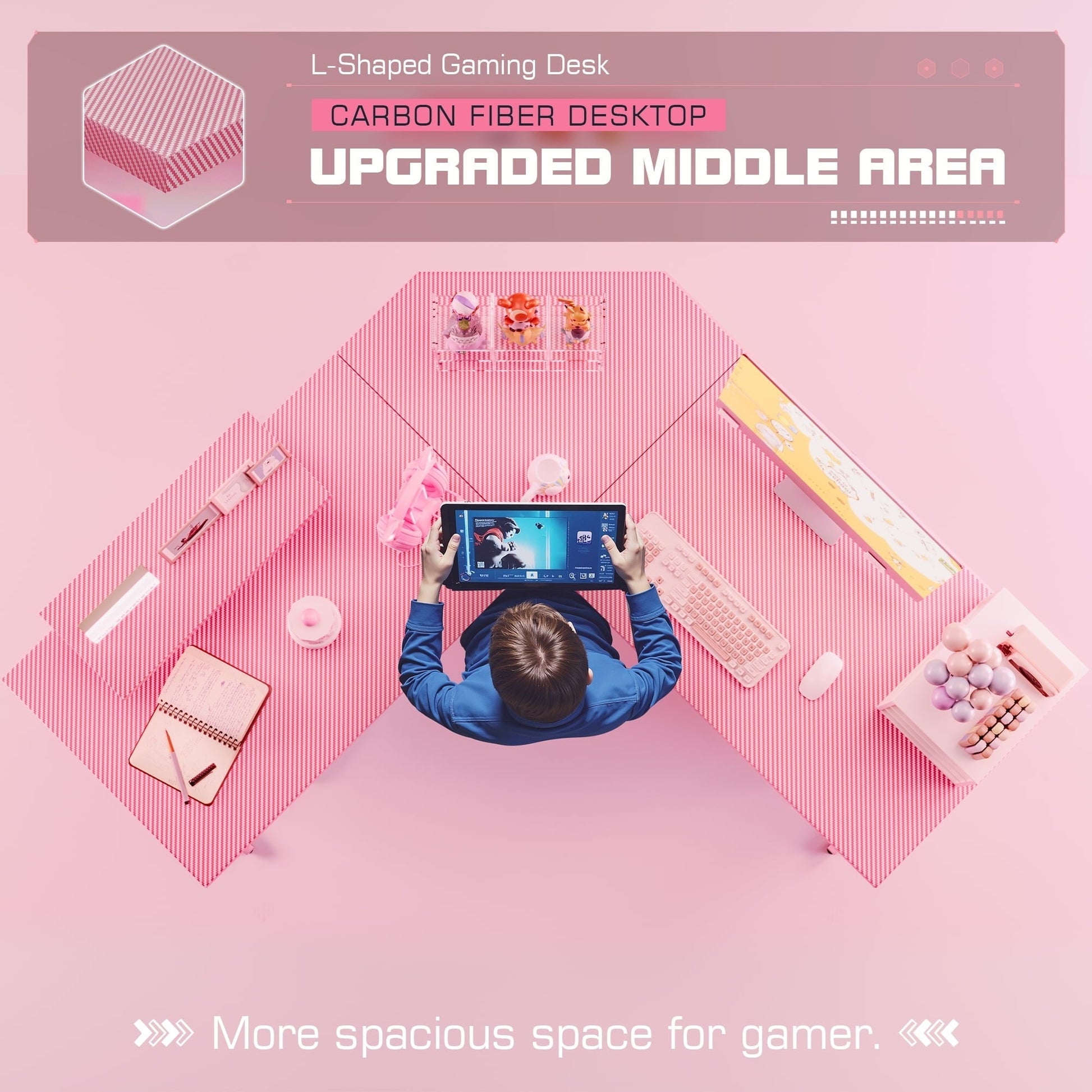 - Efficient Design: The L-shaped layout optimizes corner space, freeing up the central area of the room for a wider activity zone and providing ample storage options. The dual desktops facilitate seamless transitions during work or gaming sessions.