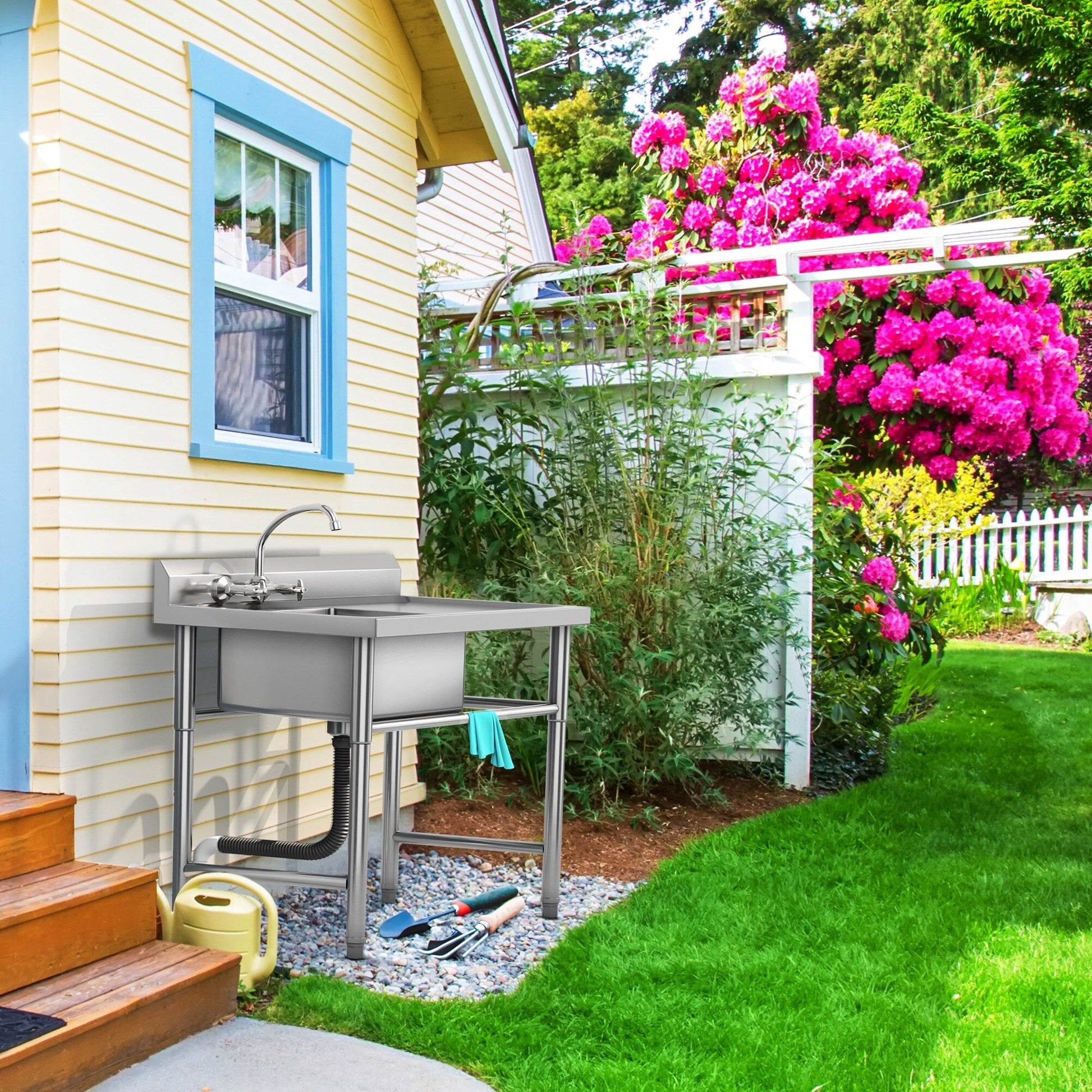 Cet évier utilitaire autoportant est très résistant à la corrosion, à l'oxydation et à la déformation, ce qui lui confère une grande durabilité, sans rouille ni déformation, et vous évite les fuites. De plus, sa surface lisse facilite son nettoyage, vous faisant gagner un temps précieux. Ses dimensions (11,9 x 5,5 x 10,4 m) et sa cuve (3,1 x 3,3 m) et sa profondeur (2,6 m) en font un appareil idéal pour nettoyer la vaisselle et même les vêtements, maintenir un environnement propre et éviter les obstructions des canalisations.