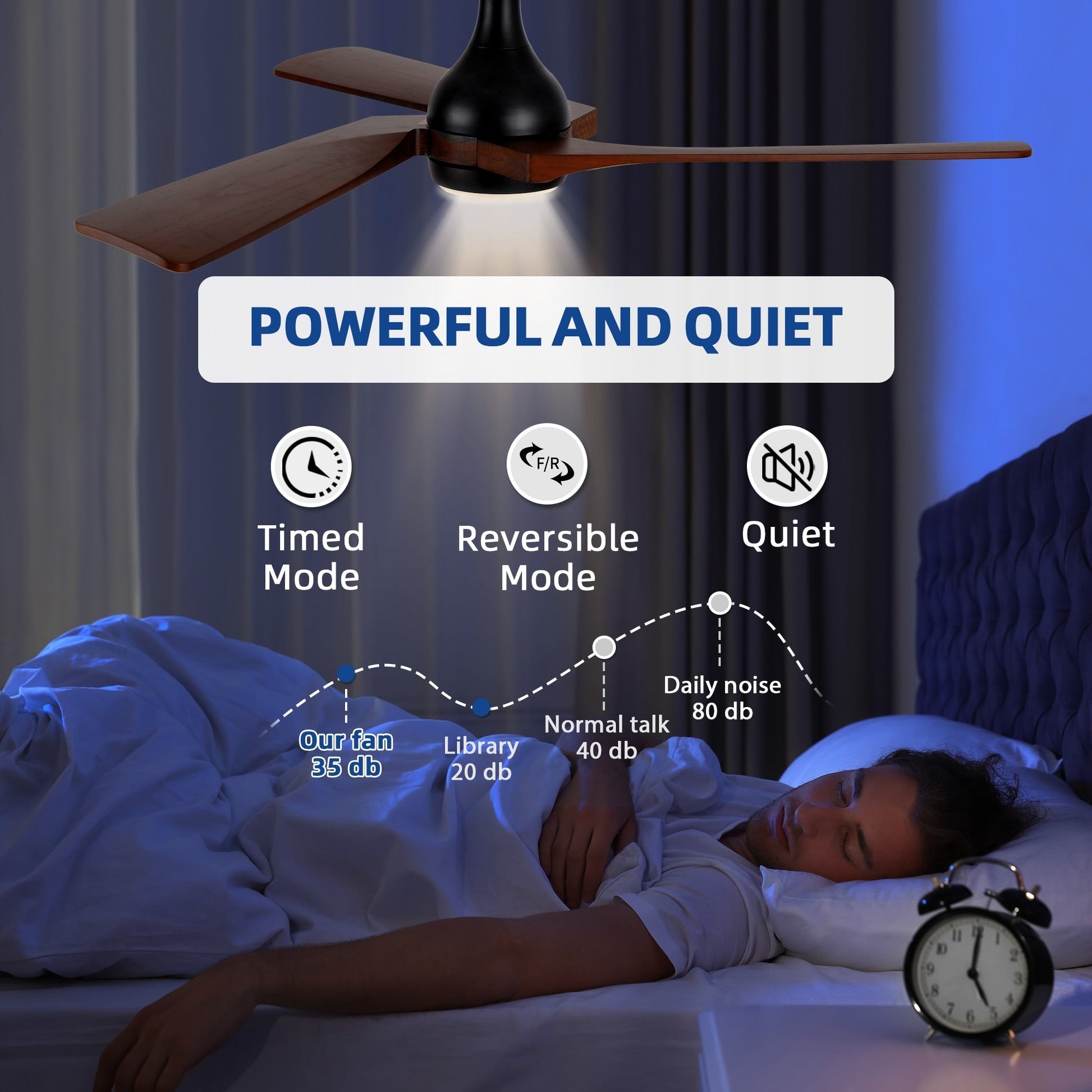 Moasis 52 Modern Remote Control Ceiling Fan with Lights and 5 Solid Wood Blades