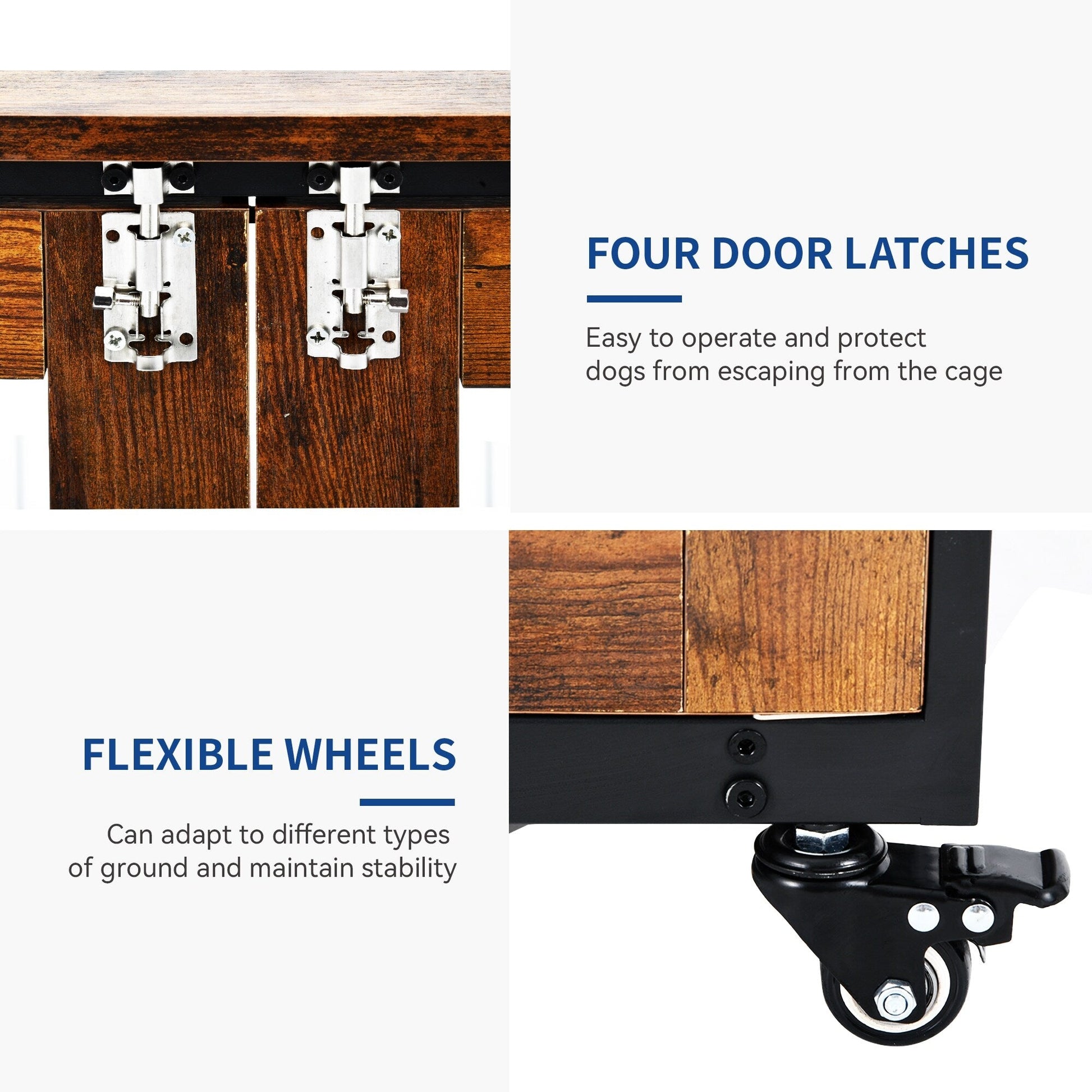 Vous cherchez toujours la cage idéale pour votre chien, alliant style et fonctionnalité ? Celle-ci surpasse de loin nos alternatives. Sa structure métallique est robuste et durable, le bois P2 utilisé présente une faible émission de formaldéhyde pour la sécurité de votre animal, et sa surface renforcée la rend plus résistante aux griffures. Son design ingénieux sur le côté permet de remplir les gamelles et de les remuer à l'intérieur sans ouvrir les portes. De plus, ses trois entrées facilitent l'entrée et la sortie de votre chien, et ses quatre roulettes avec freins vous permettent de la déplacer facilement à l'extérieur pour profiter du soleil et de l'air frais. Sans aucun doute, c'est la meilleure cage au design luxueux et au prix le plus juste.