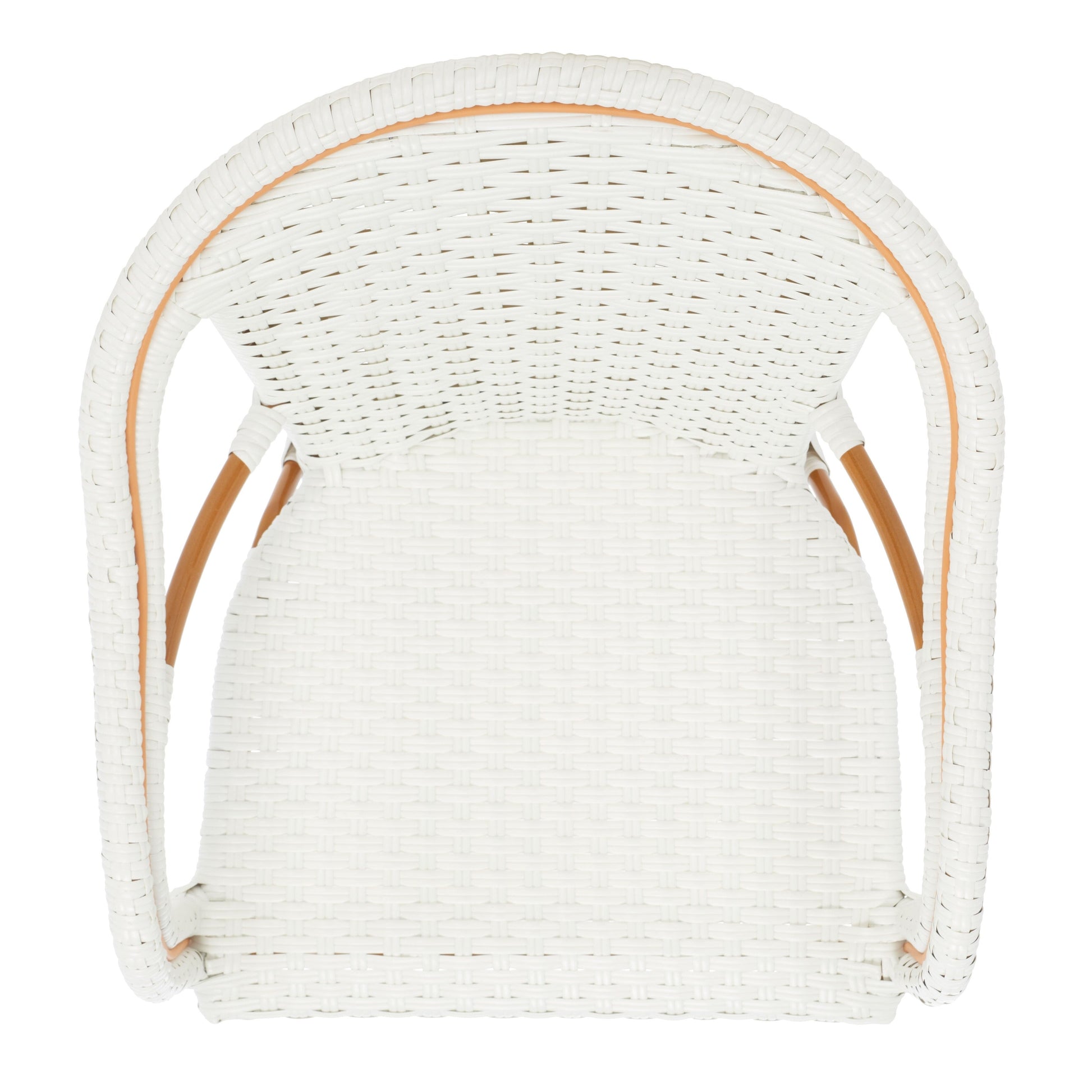 Complement any outdoor space with the breezy charm and warmth of our armchair. It updates the time-honored French bistro chair with a color palette. Its woven contours and sheltering arms offer easy comfort. Featuring faux wicker elegantly wrapped around an aluminum frame, our armchair captures textural beauty that can withstand the effect of sun, rain, and heat. Our lightweight and weather-friendly armchair can serve as a convenient, stylish, and comfortable spot to lounge or dine in your patio or terrace.