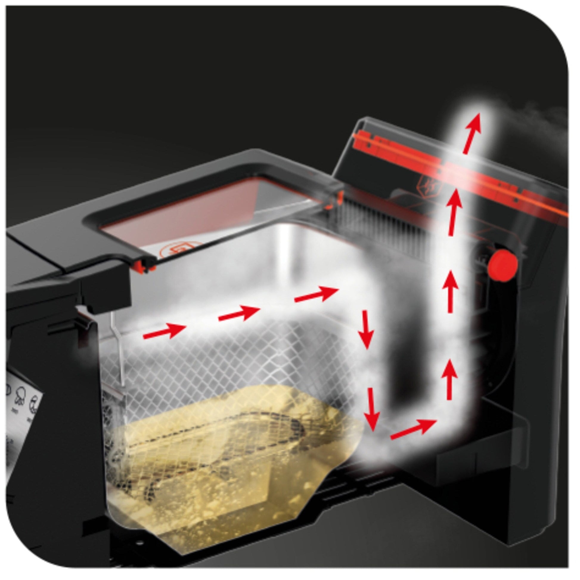 • La friteuse sans odeur T-Fal est conçue pour réduire jusqu'à 74 % des odeurs pendant la cuisson, grâce à son système de filtration active unique !* Vous pouvez désormais profiter de vos aliments frits préférés tout en réduisant considérablement les odeurs !