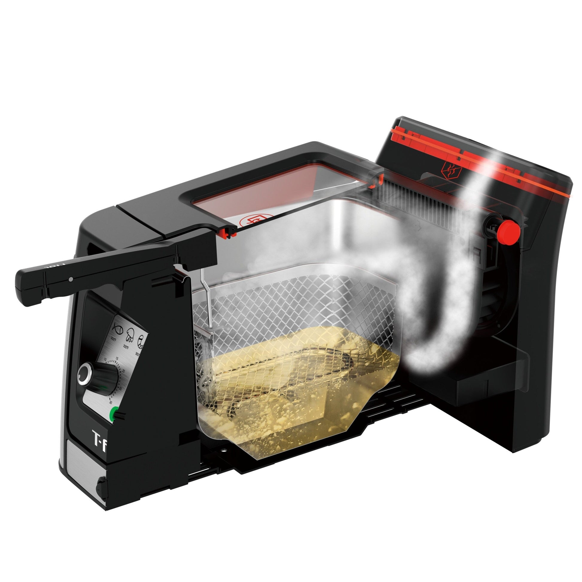 • Minuterie réglable : La minuterie réglable (jusqu'à 30 minutes) élimine les incertitudes, vous aidant à effectuer plusieurs tâches tout en faisant frire vos aliments à la perfection.