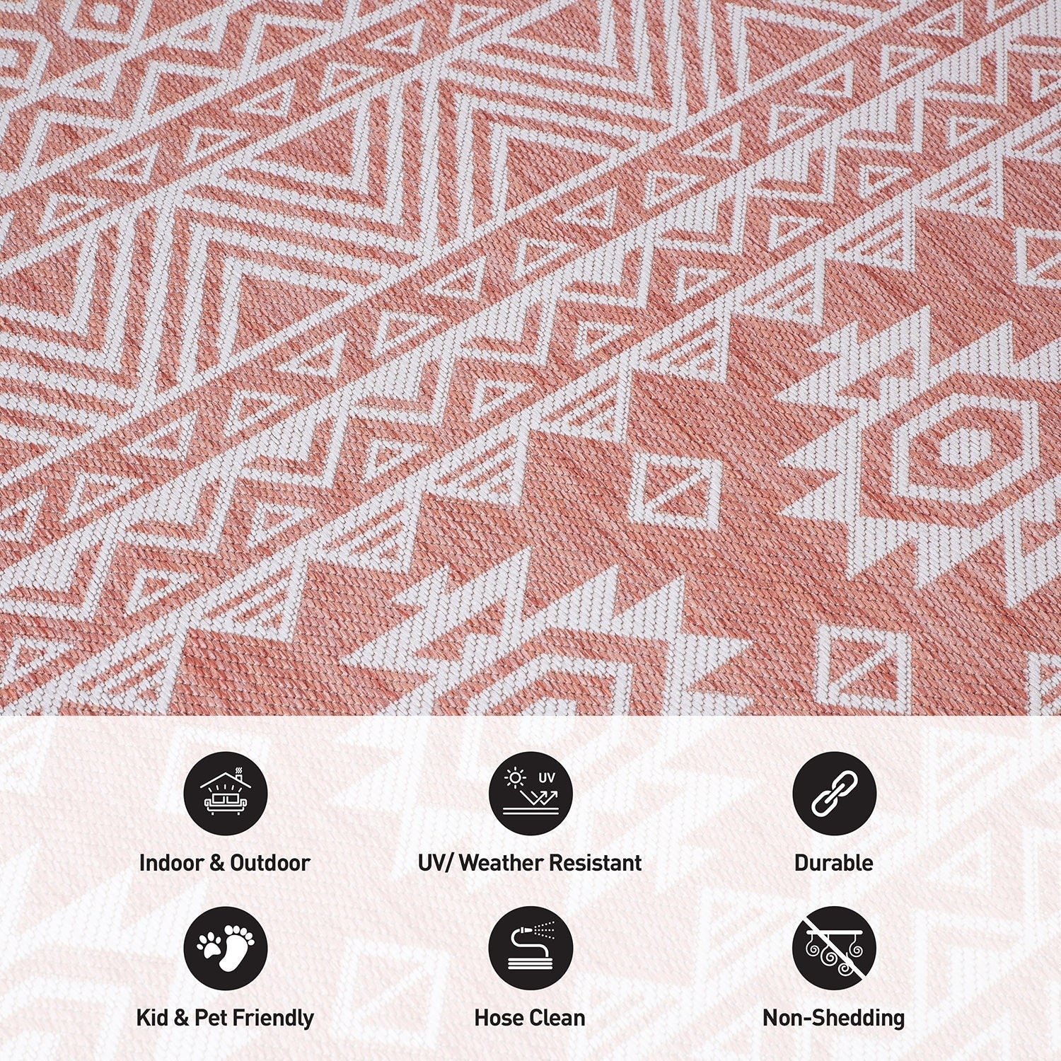 - Indoor/Outdoor area rugs designed with resilience against everyday wear-and-tear, this rug is kid and pet friendly and perfect for high traffic areas of your home such as backyard, patio, deck, screened-in porch, sunroom, living room, dining room, bedroom, entryway, nursery, kid's room, playroom, dorm room, study, or home office. Flatweave weather resistant construction. Rug pad is recommended for indoor use only. 聽
