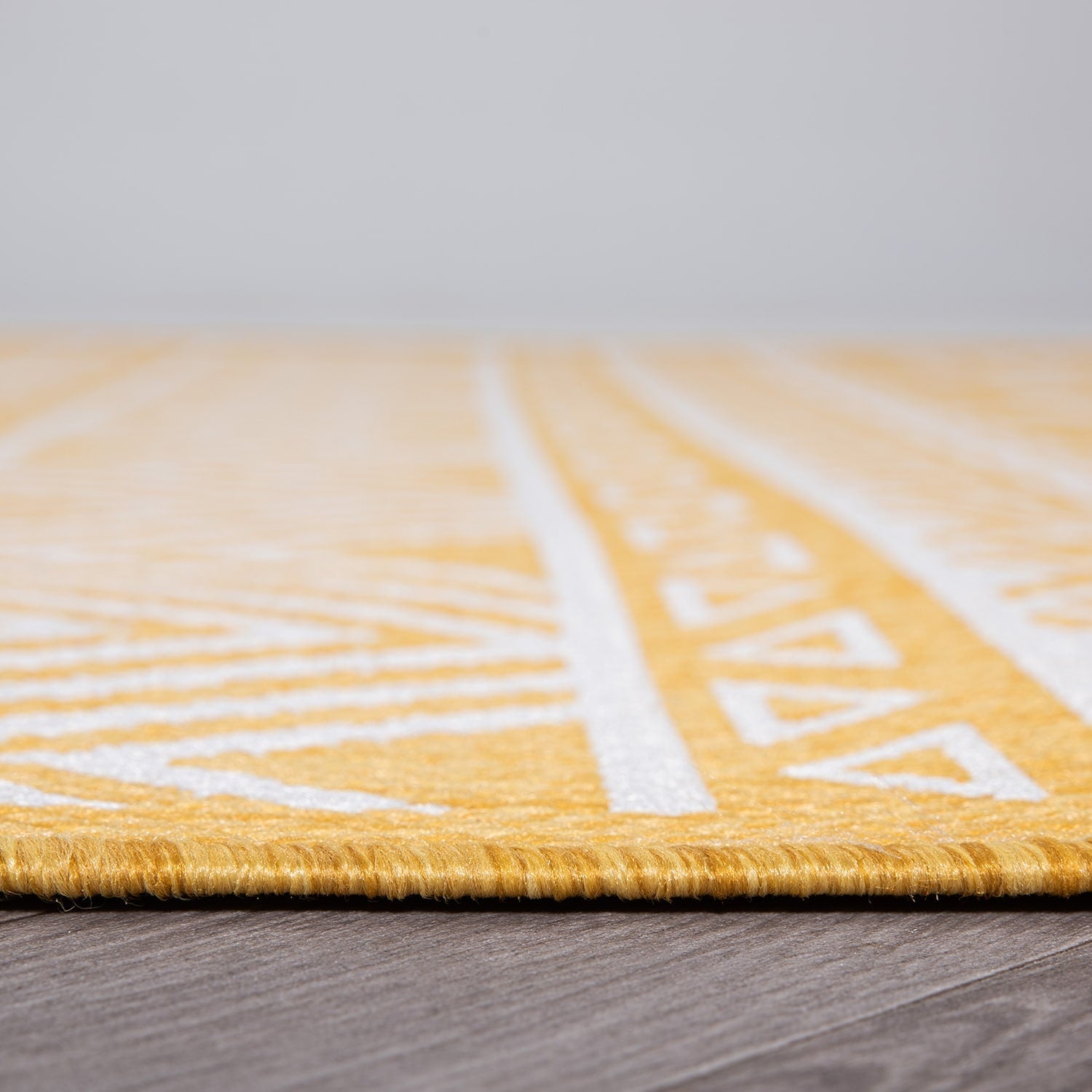 Liven up your indoor or outdoor d茅cor with this contemporary flatwoven rug. It features a modern geometric design and vibrant colors.It is easy to maintain by rinsing with a garden hose with soapy water and air drying.For indoor or outdoor use. This collection offers area rugs that are suitable for all indoor/outdoor spaces.