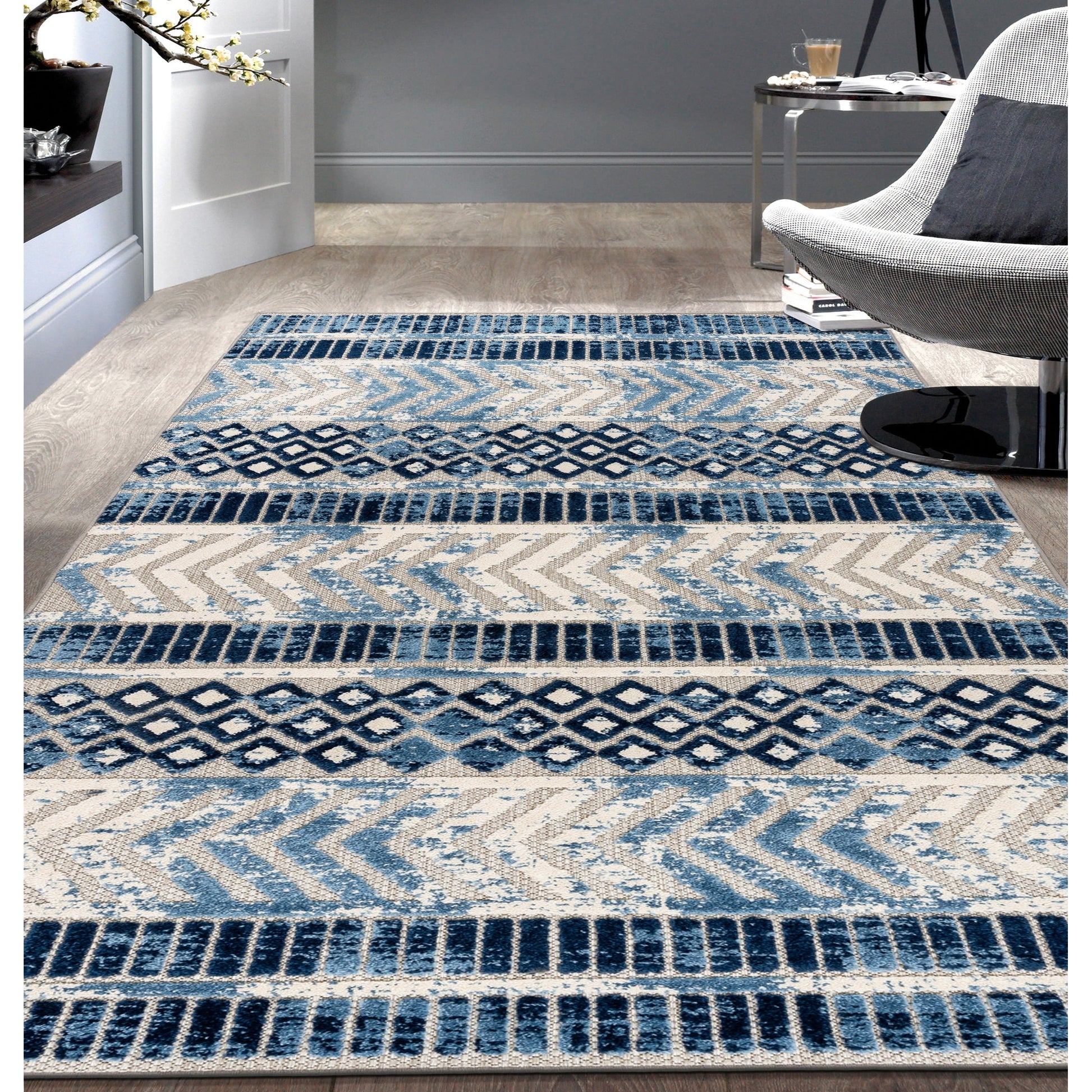 World Rug Gallery Distressed Geometric Indoor/Outdoor Area Rug